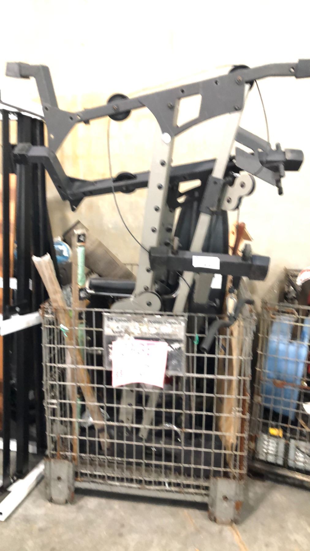 WIRE CRATE INCL FITNESS EQUIPMENT, CENTER RUG, TRAMPOLINE AND MORE - MUST TAKE ALL