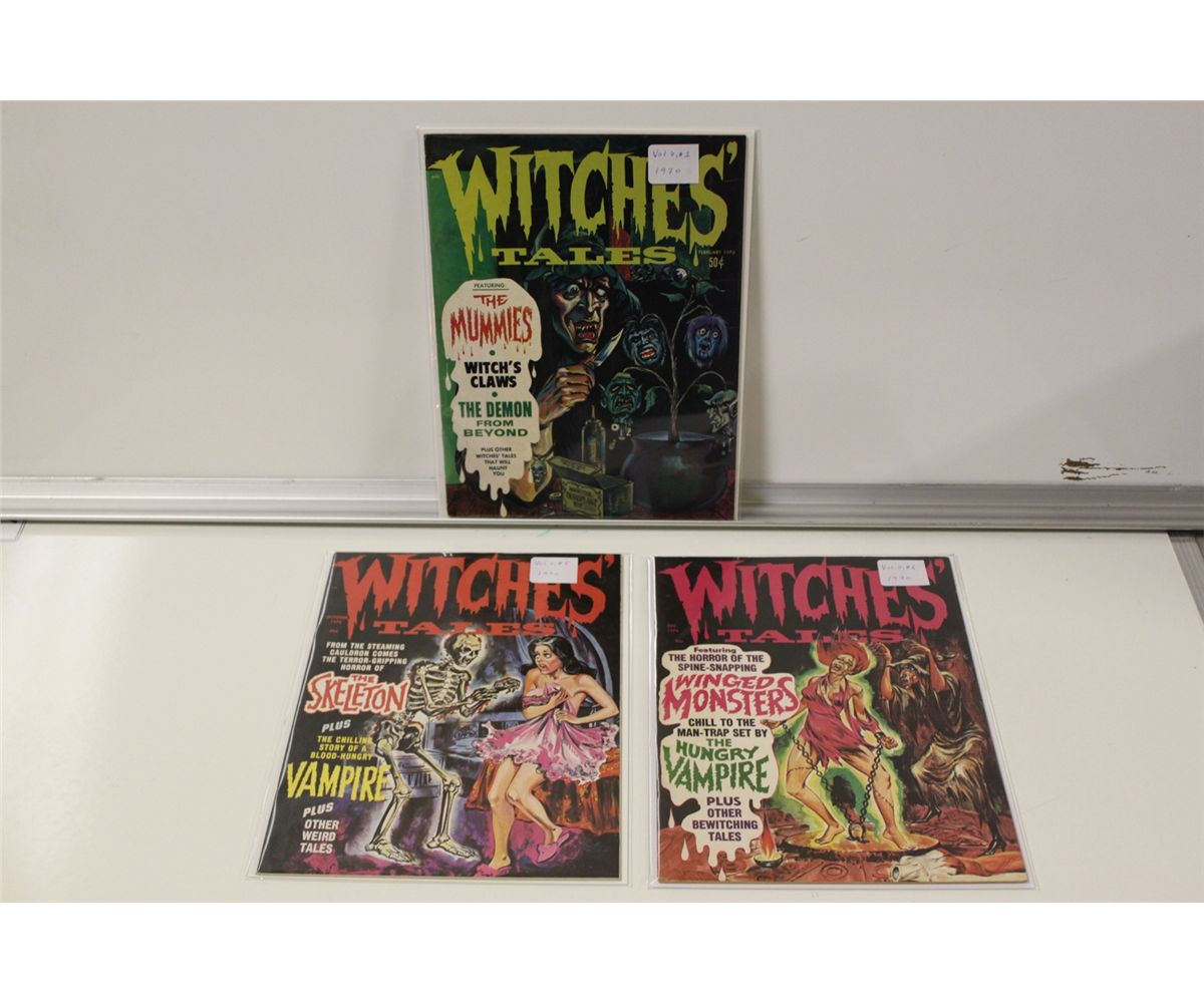 WITCHES' TALES 1970 RUN *RARE IN HIGH GRADE* 3 ISSUE LOT : VOL 2 - # 1, 5 & 6, LOW PRINT, GORY CONTENT, HIGH GRADE, SHARP, GORGEOUS COPIES