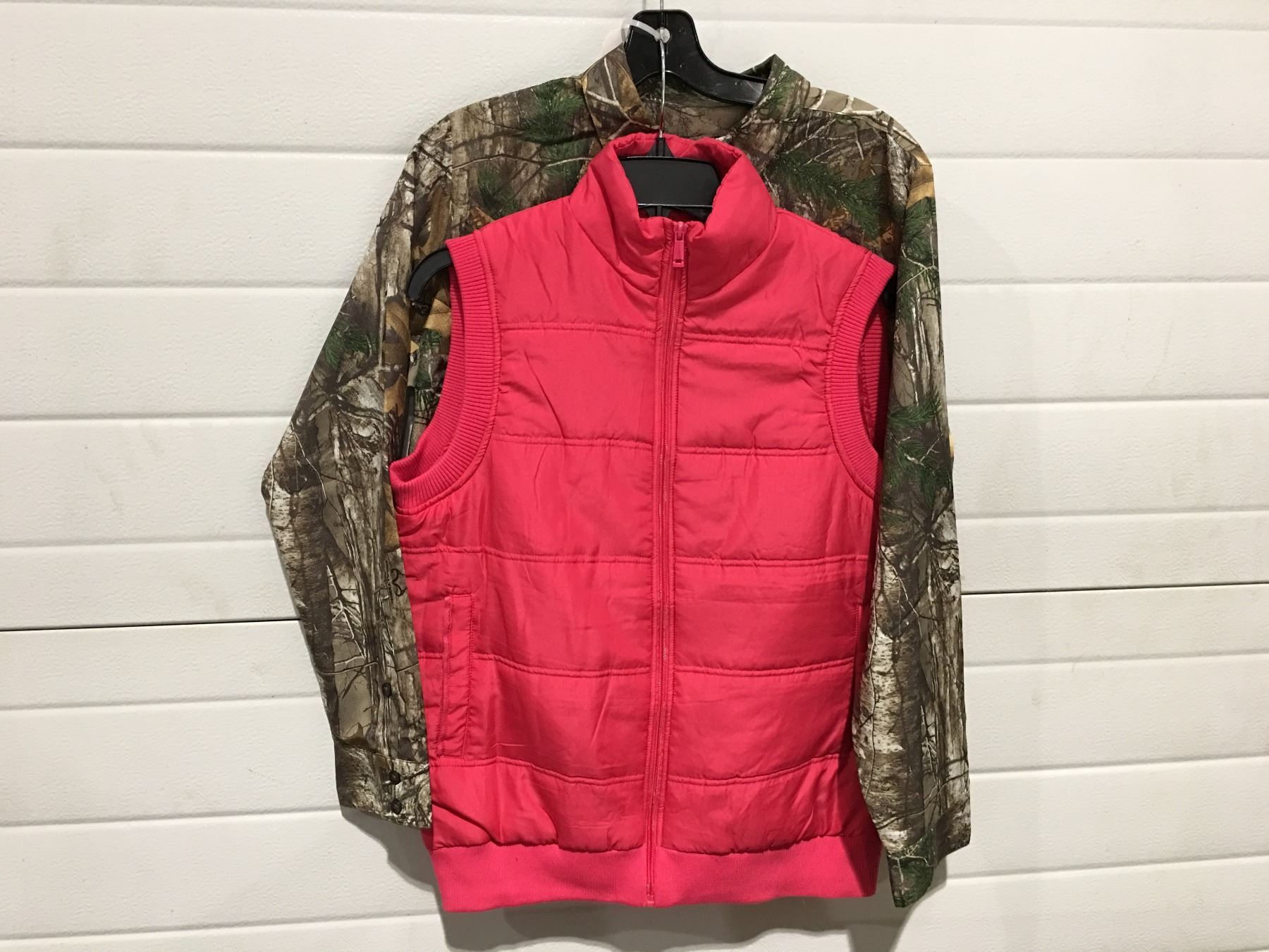 WOMEN'S UNDER ARMOUR CAMO SHIRT SIZE L WITH YOUNG USA PINK VEST SIZE L
