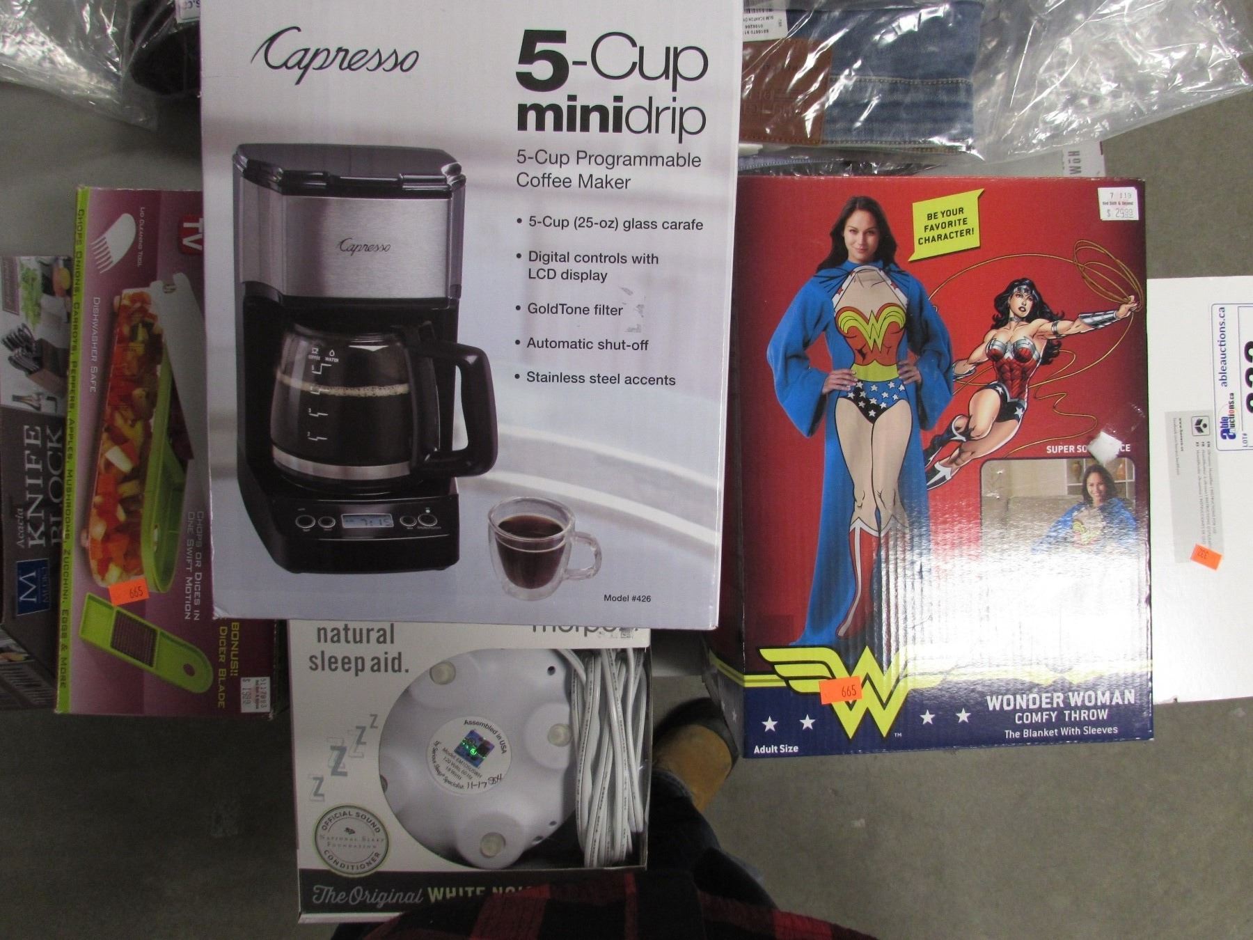 WONDER WOMAN COMFY THROW BLANKET WITH SLEEVES/CAPRESSO 5-CUP MINI DRIP/WHITE NOISE MACHINE/CHOP WIZARD