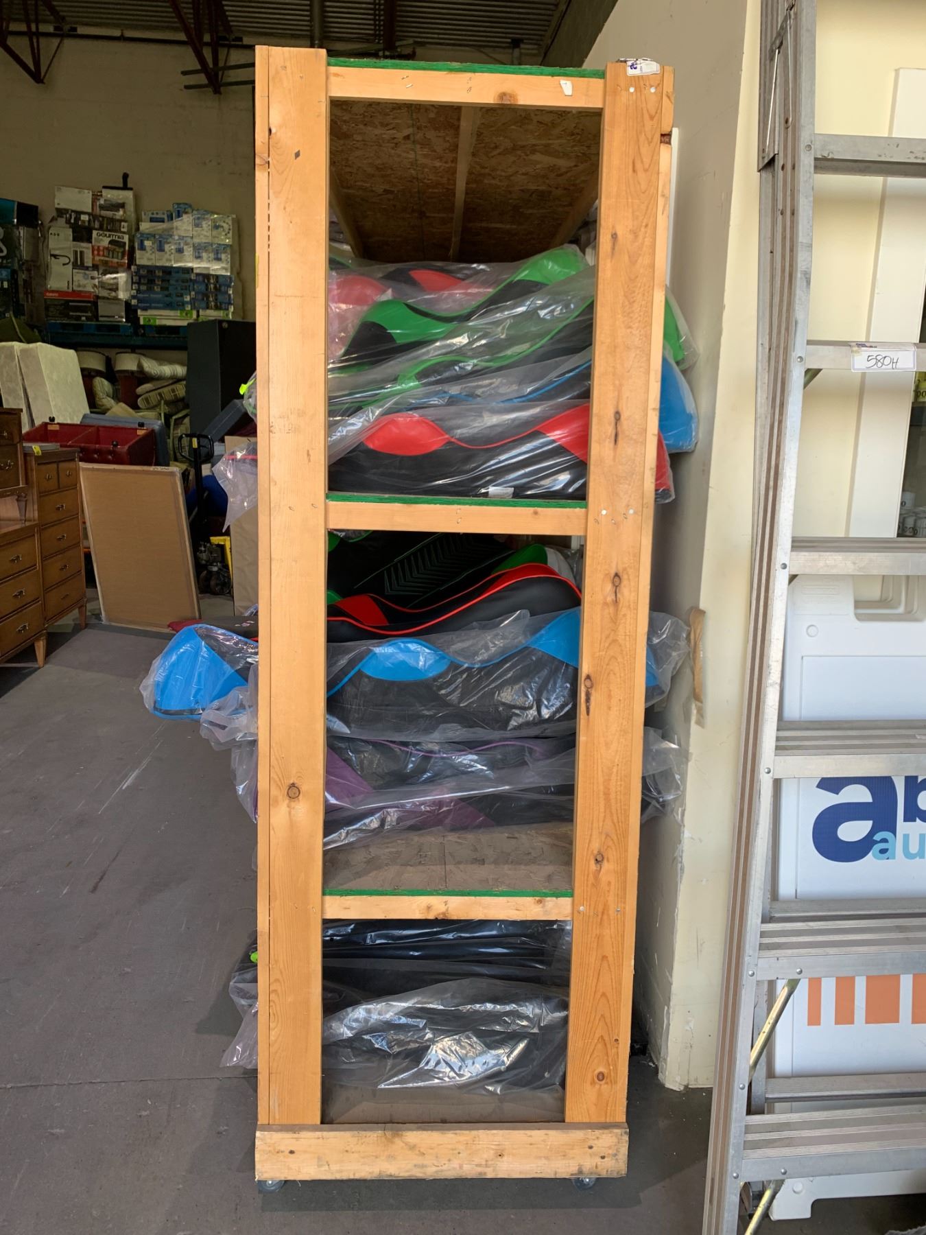 WOOD 4 TIER ROLLING RACK (CONTENTS NOT INCLUDED)