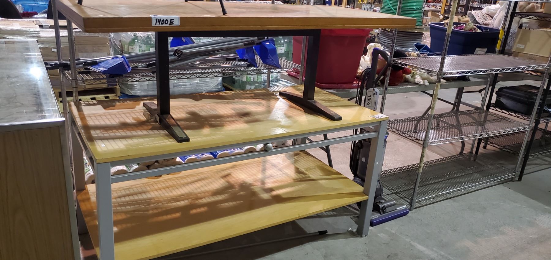 WOOD AND METAL DESK AND WOOD AND METAL COFFEE TABLE