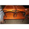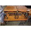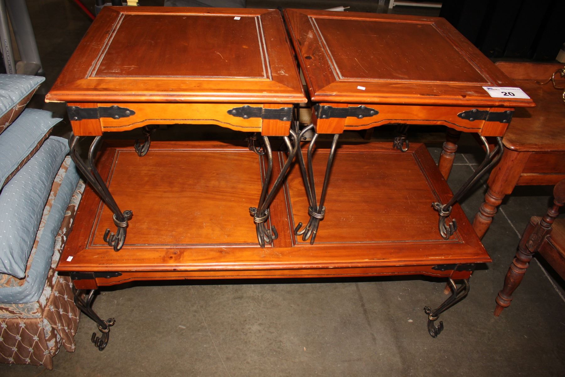 WOOD & BLACK METAL COFFEE TABLE WITH MATCHING PAIR OF SIDE TABLES