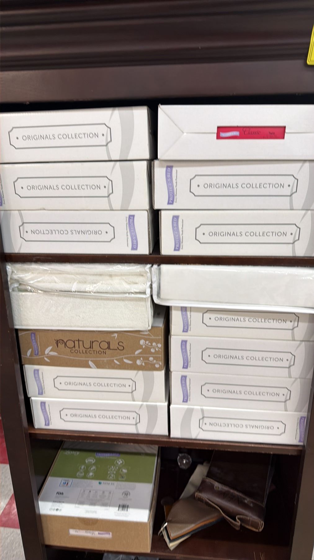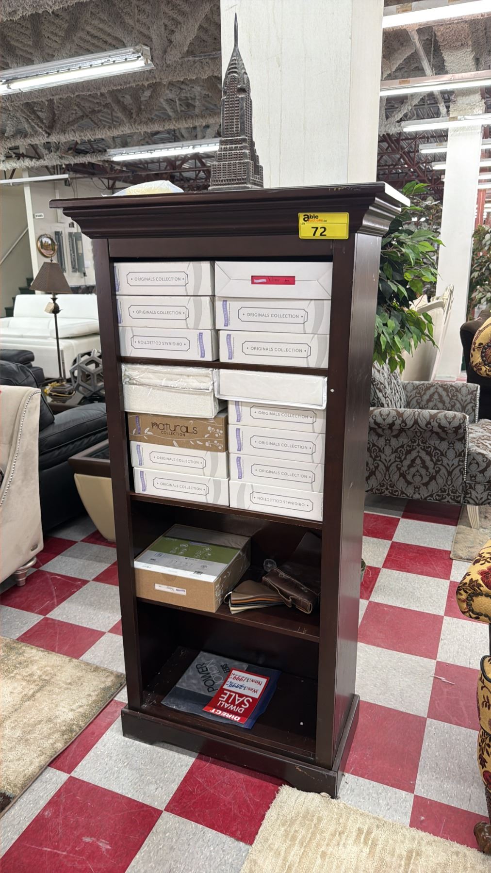 WOOD BOOKCASE WITH ORIGINALS COLLECTION BEDDING CONTENTS
