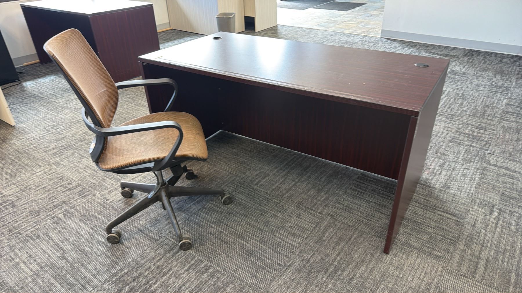 WOOD DESK & ROLLING OFFICE CHAIR