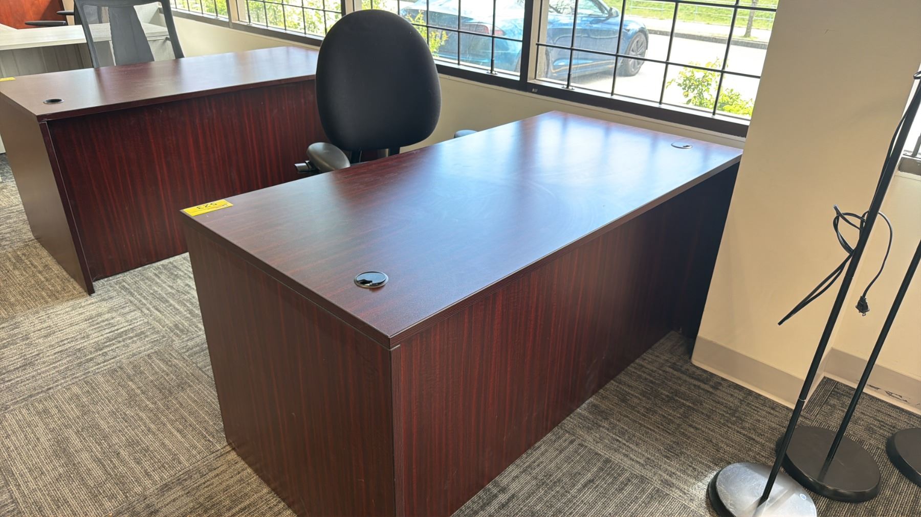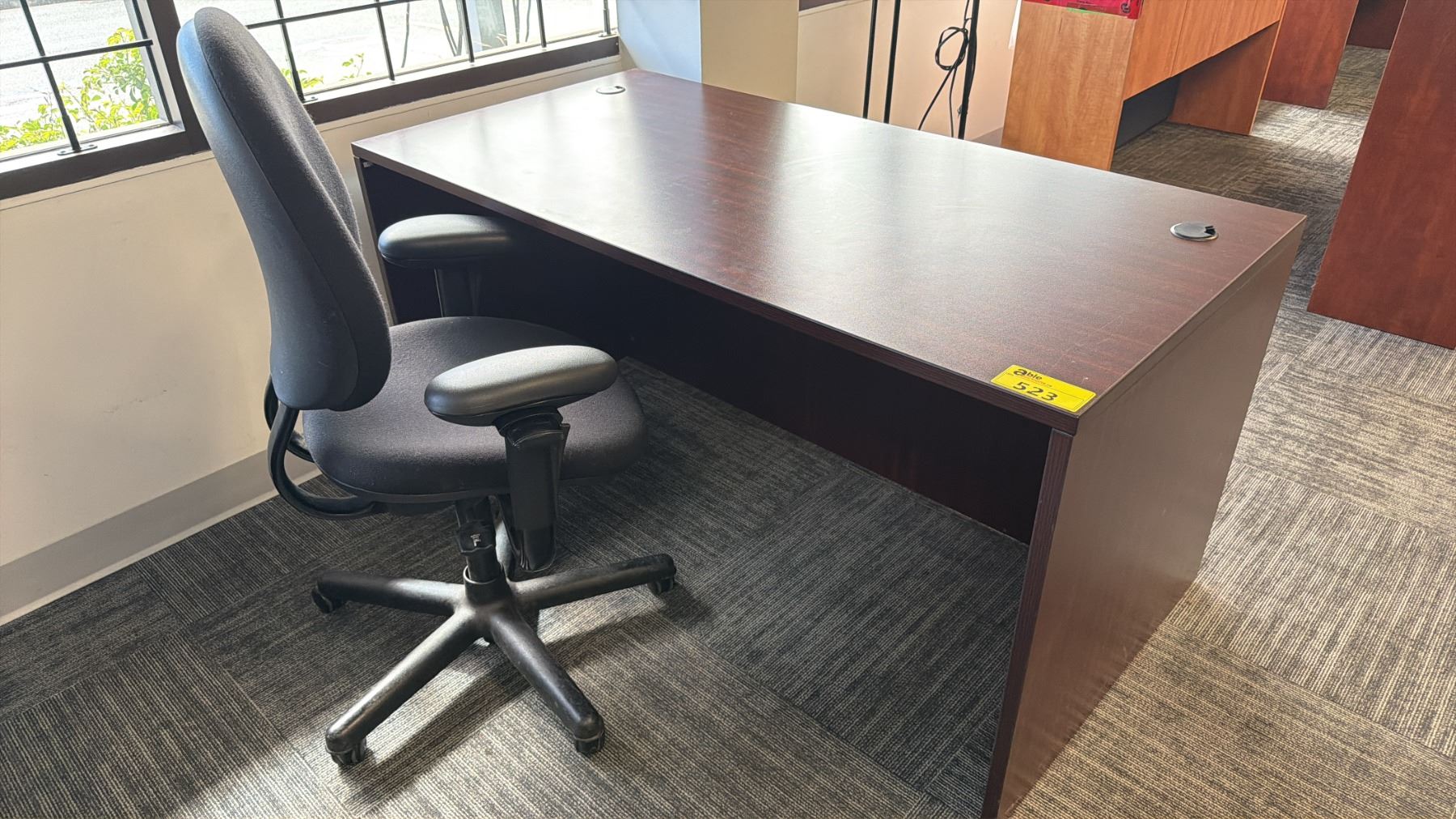 WOOD DESK WITH ROLLING OFFICE CHAIR