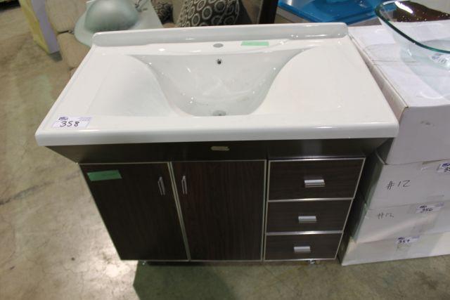WOOD FINISHED & WHITE BATHROOM VANITY SET