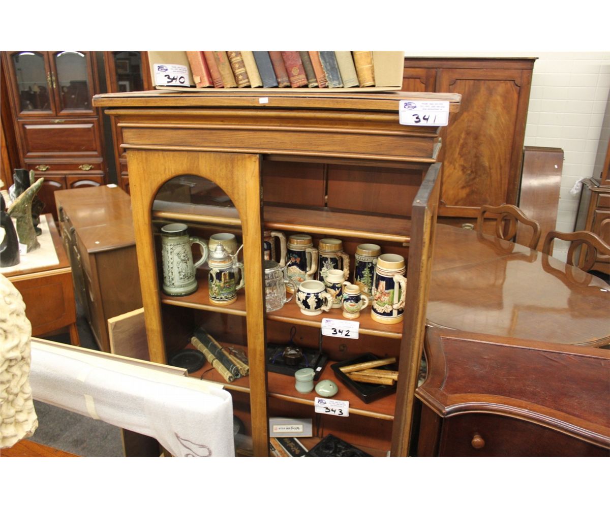 WOOD/GLASS ANTIQUE 3 SHELF BOOKCASE