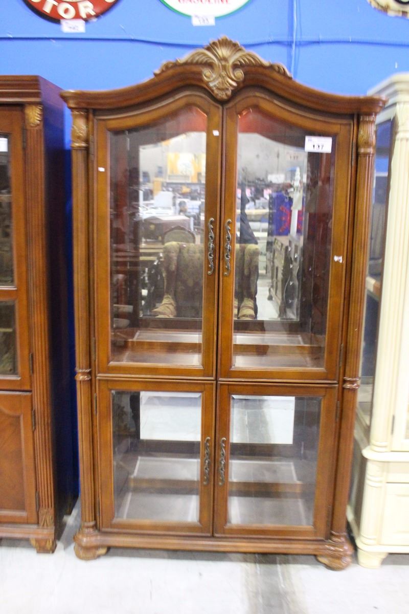 WOOD GRAIN BEVELED GLASS 4 DOOR CHINA CABINET