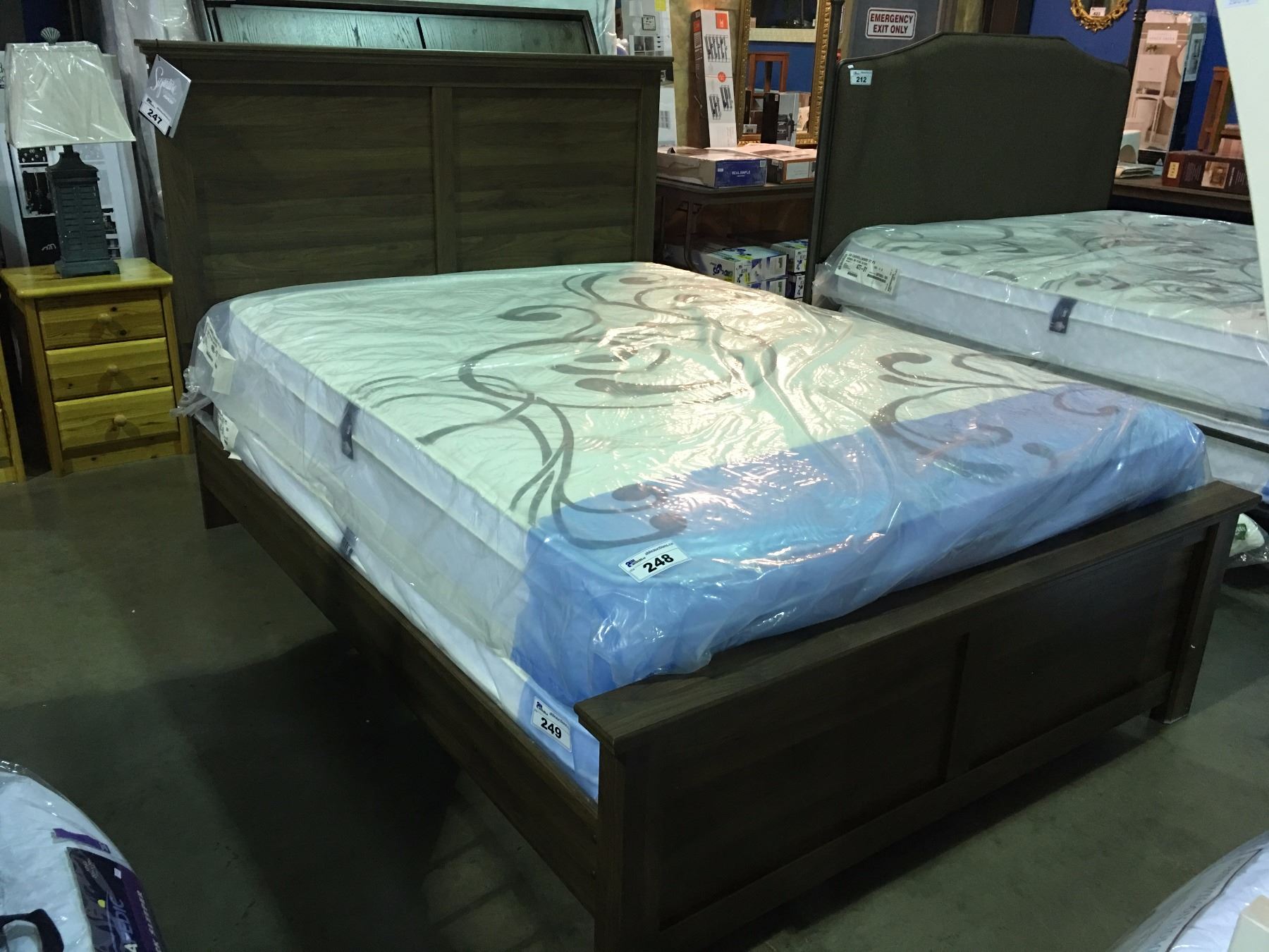 WOOD GRAIN FINISH QUEEN SIZED BED - HEADBOARD, FOOTBOARD & RAILS