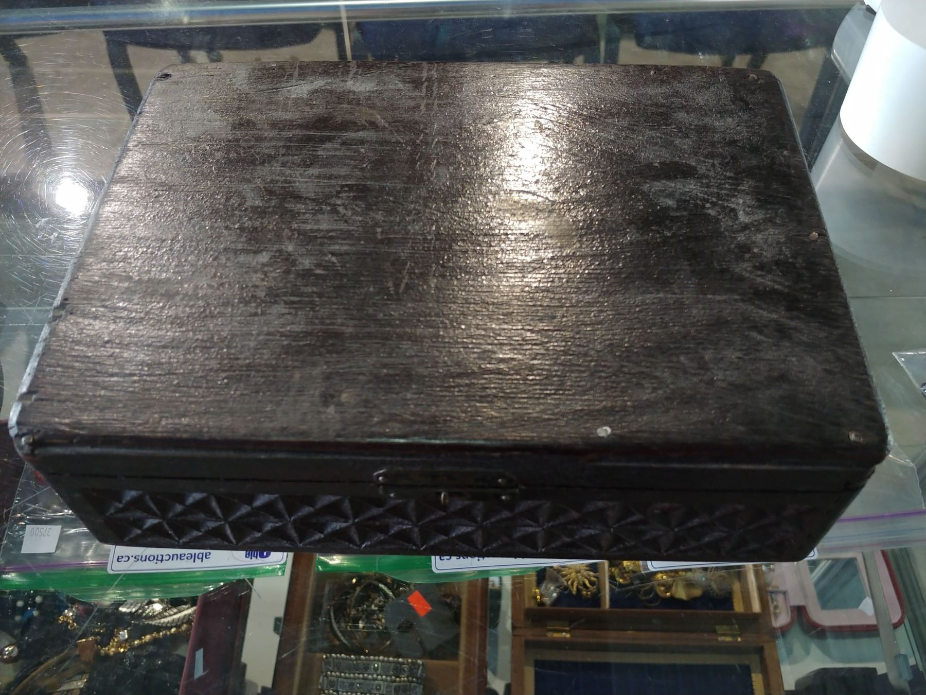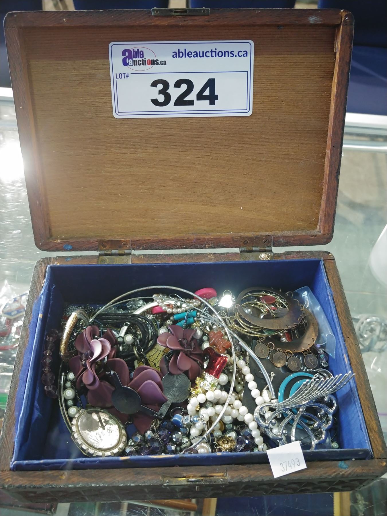 WOOD JEWELRY CHEST FILLED WITH CONTENTS