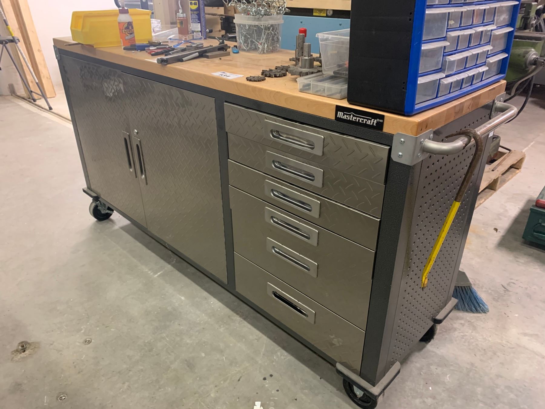 WOOD & METAL MASTERCRAFT 7 DRAWER, 2 DOOR MOBILE TOOL CHEST 72"L X 20"W X 38"H (NO CONTENTS)
