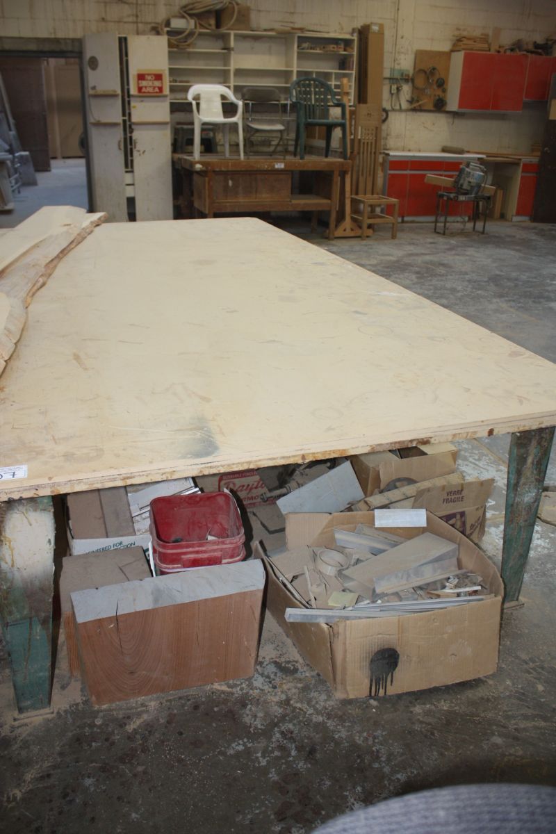 WOOD & METAL WORK TABLE AND CONTENTS