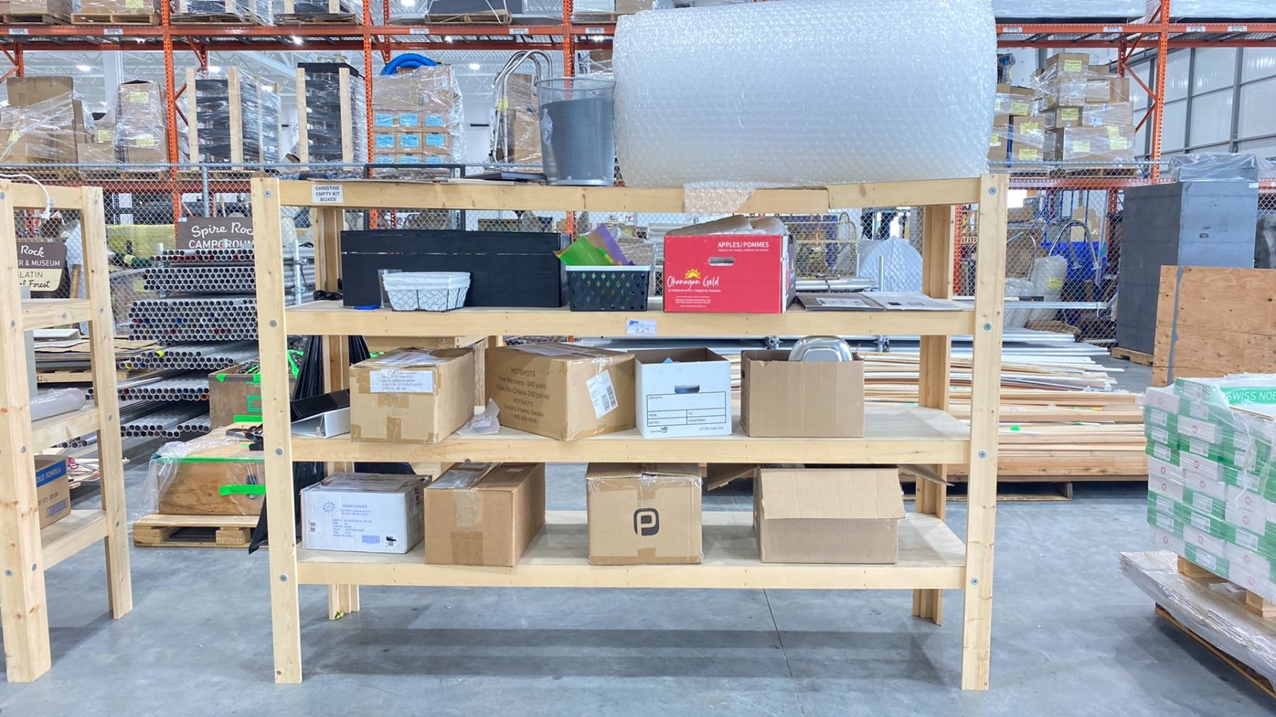 WOOD RACK WITH ASSORTED SHOW PROP CONTENTS (RACK INCLUDED & MUST BE TAKEN)