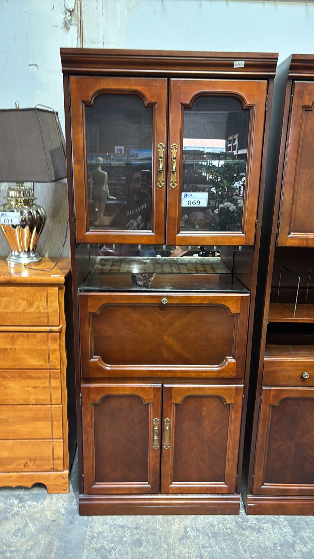 WOOD SECRETARY CABINET WITH FOLD OUT DESK