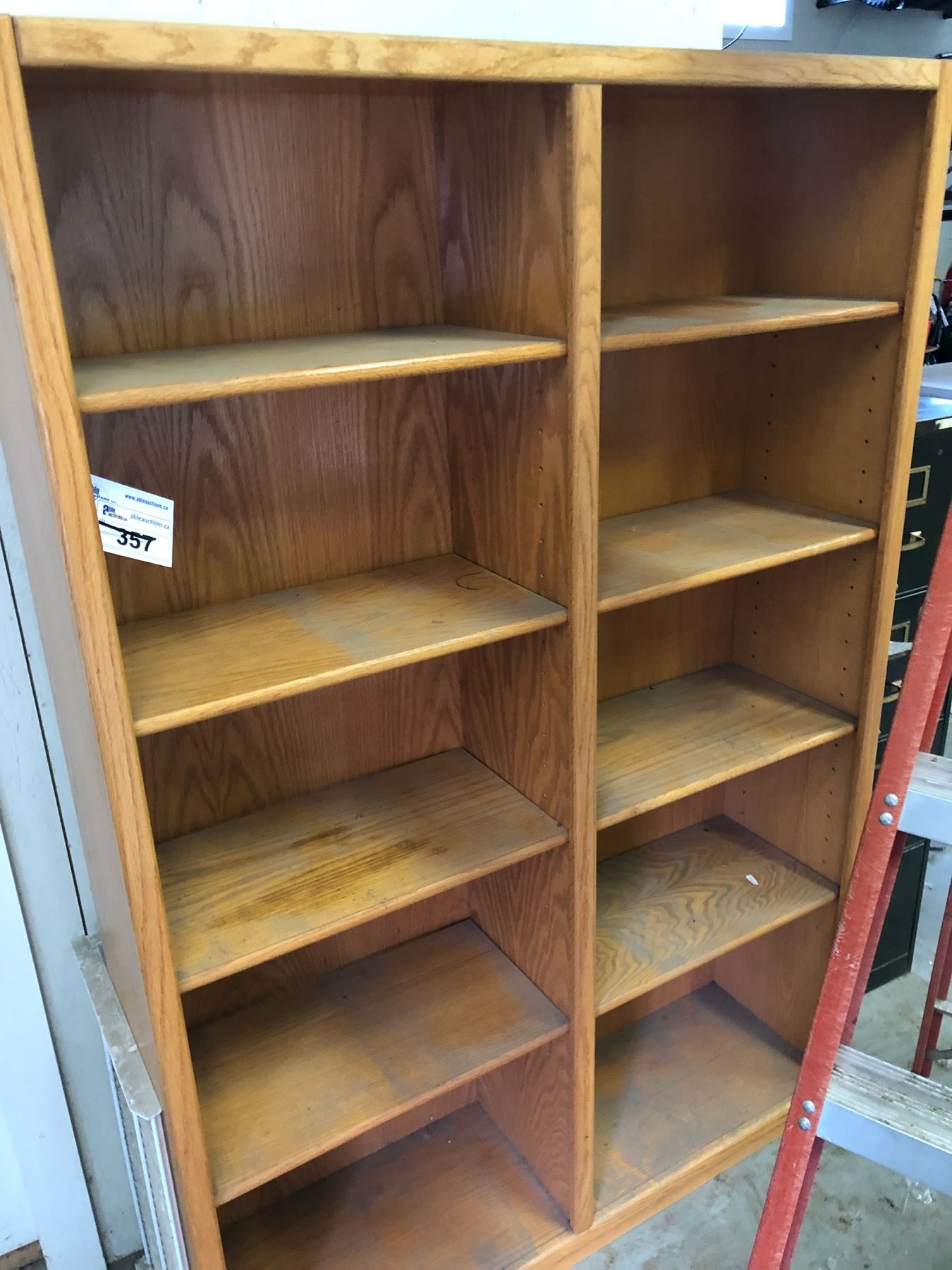 WOOD SHELVING UNIT, LATERAL FILE CABINET, DISHWASHER, AND ASSORTED WOOD FURNITURE IN SHOP