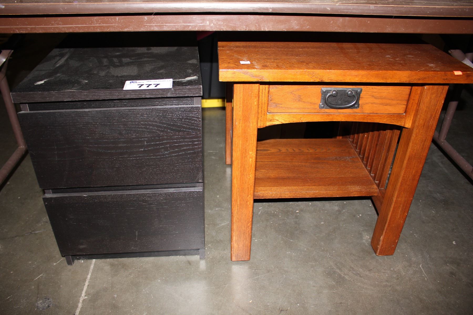 WOOD SIDE TABLE AND DARK WOOD NIGHT STAND