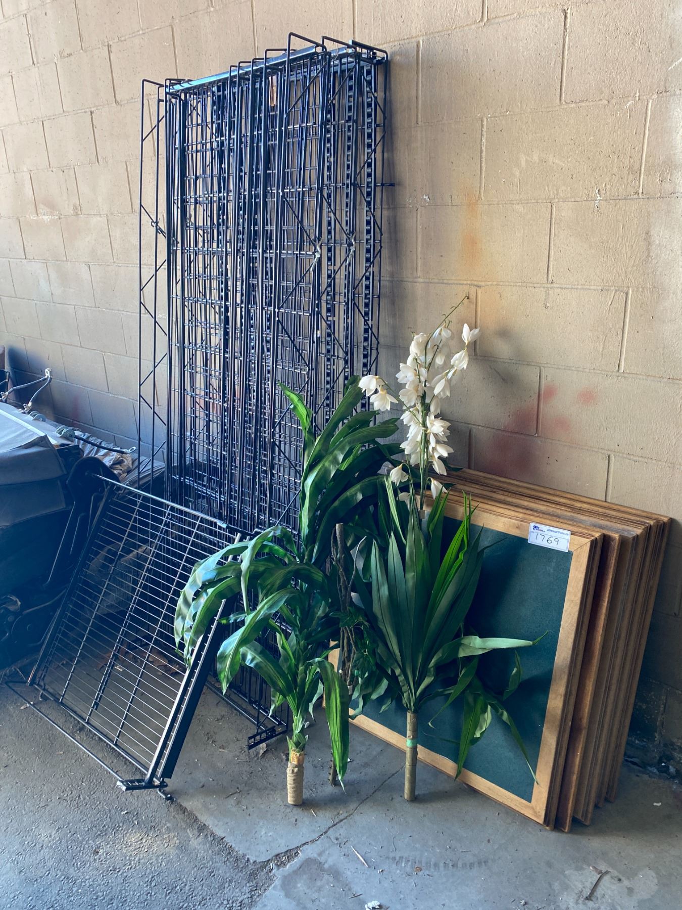 WOOD TABLE TOPS, FAUX PLANTS & WIRE RACKING PARTS