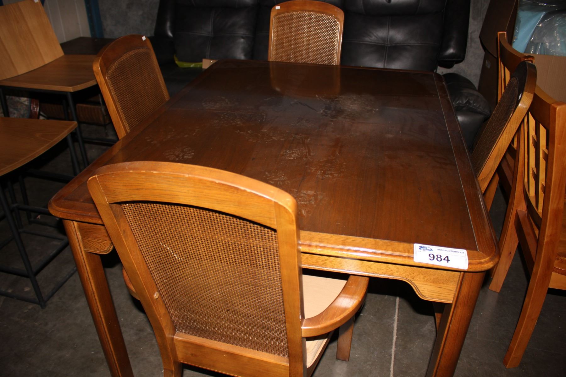 WOOD TABLE WITH FOUR PADDED CHAIRS