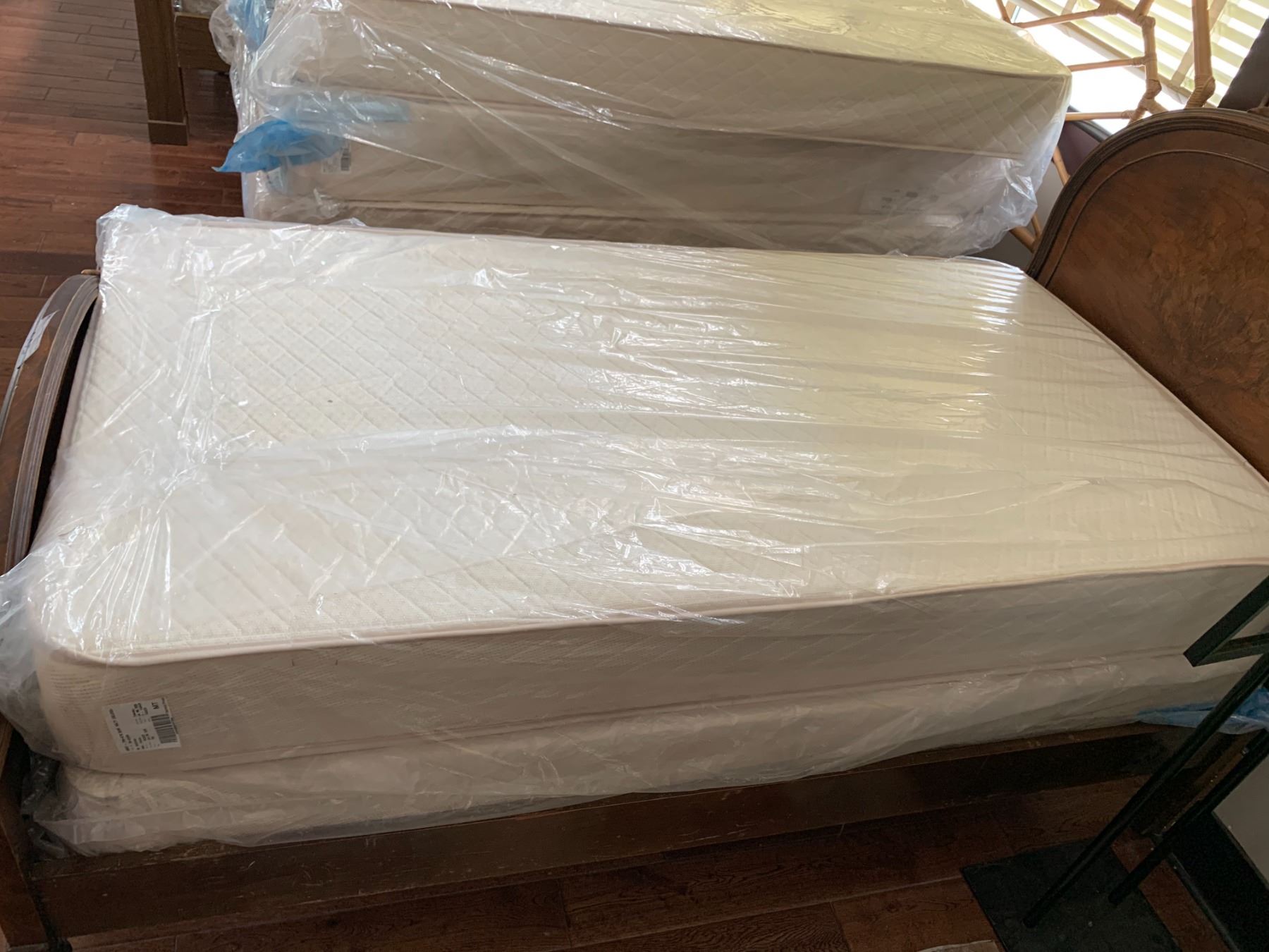 WOOD TWIN BED FRAME WITH BOX SPRING & MATTRESS