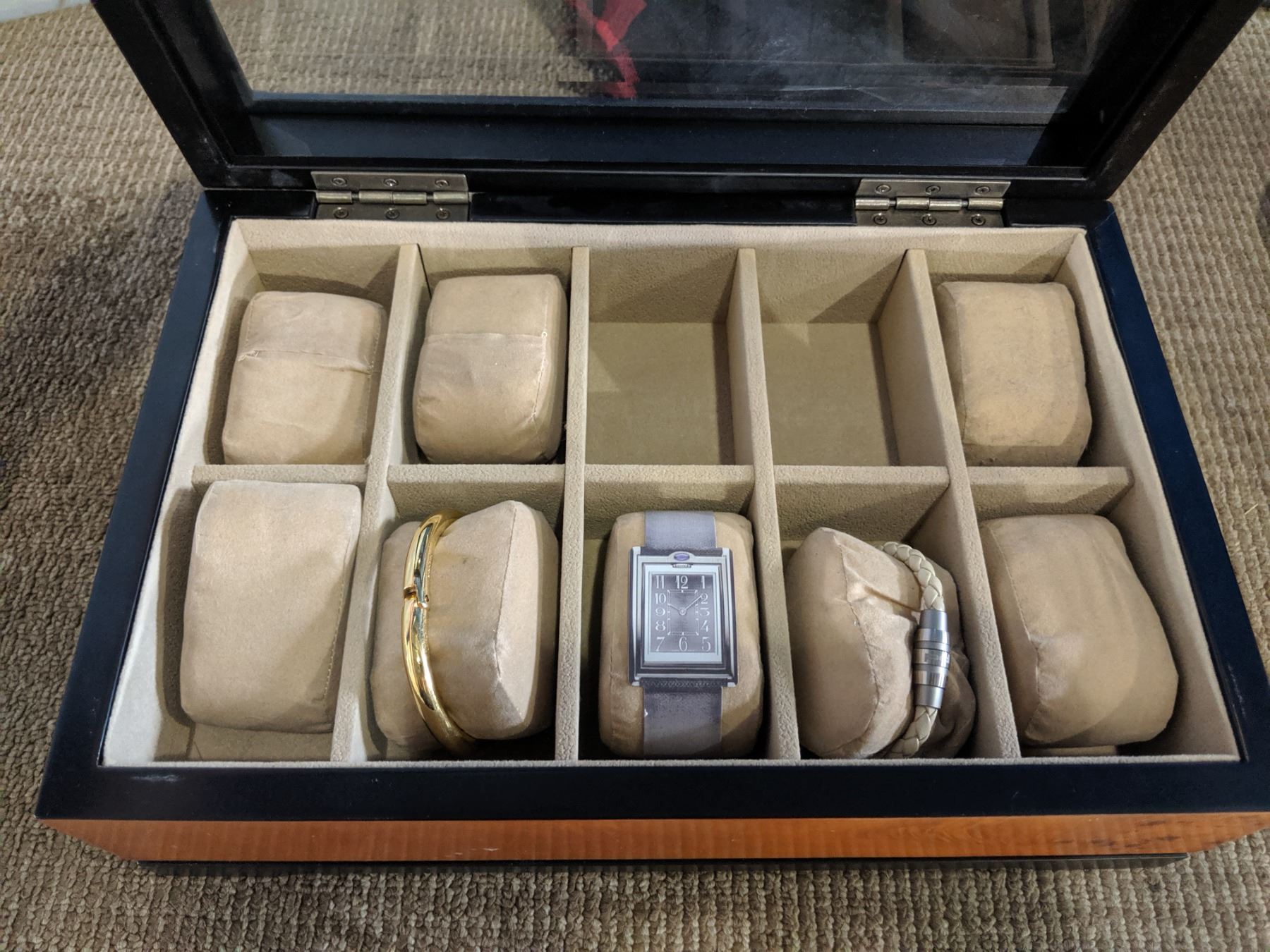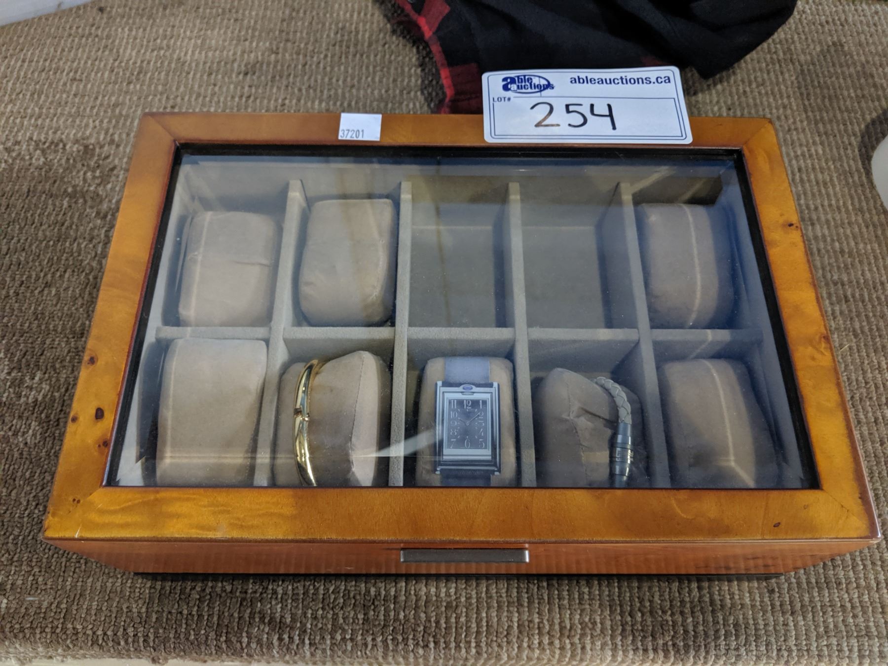 WOOD WATCH DISPLAY BOX WITH PAIR OF BRACELETS