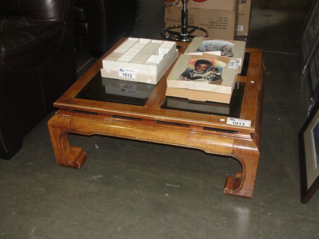 WOOD WITH GLASS TOP COFFEE TABLE