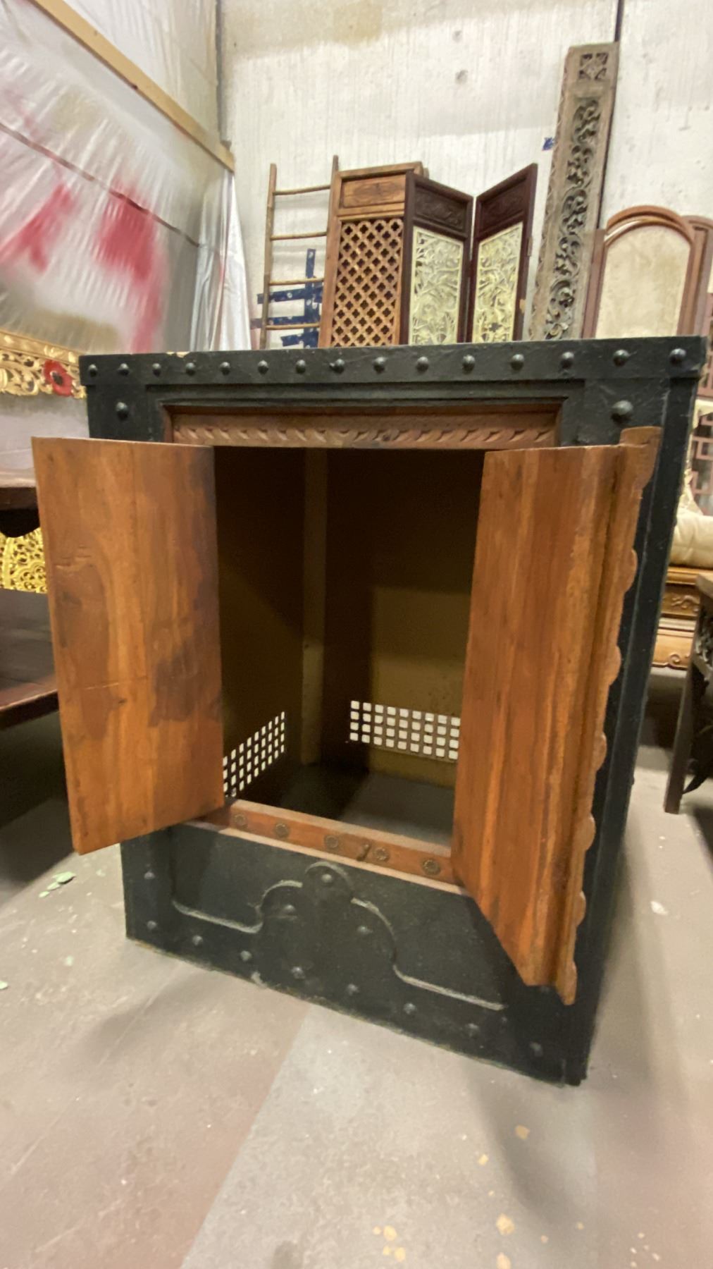 WOOD WITH METAL ACCENTS ASIAN CUPBOARD TOP SECTION