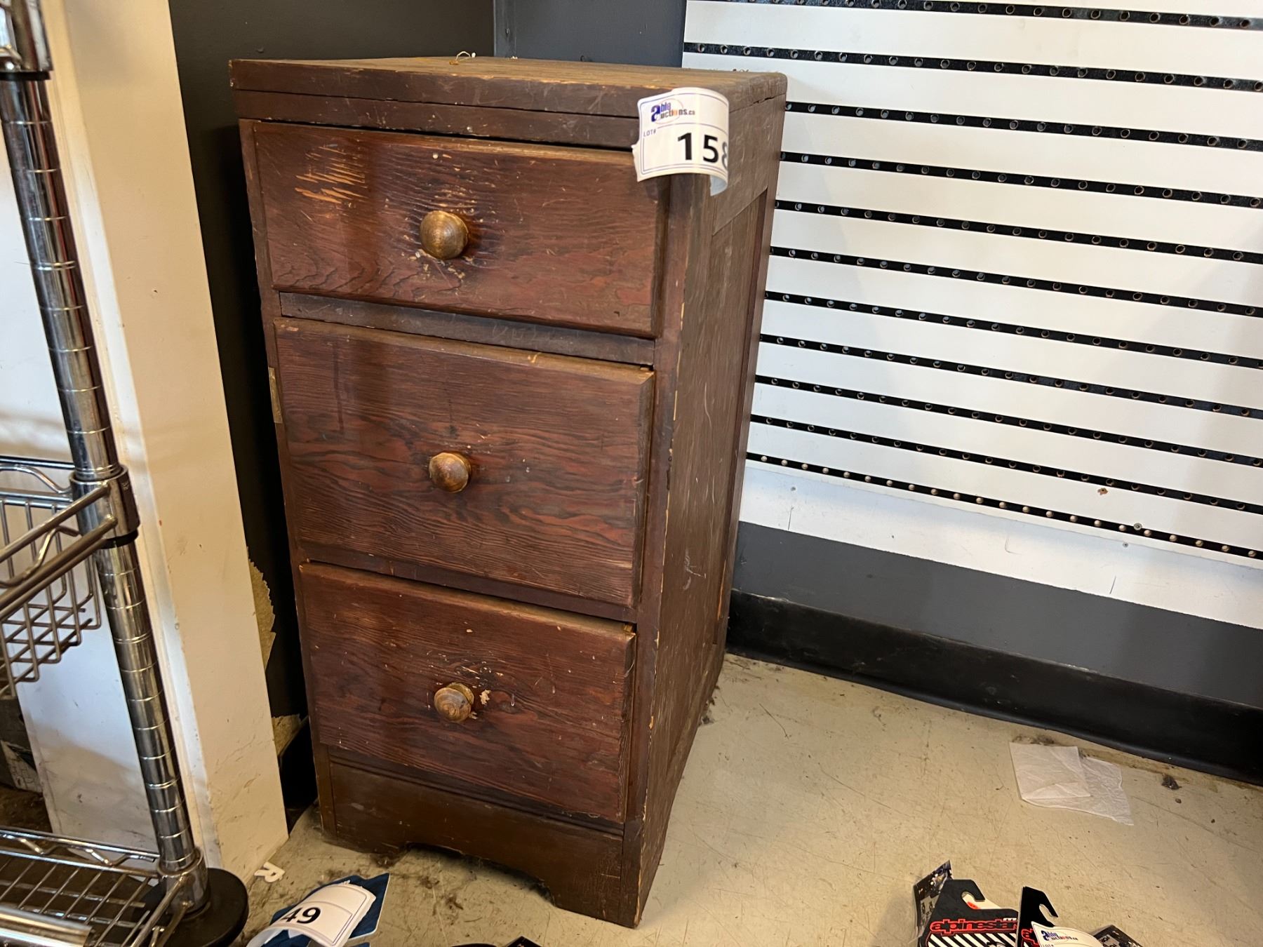 WOODEN 3 DRAWER CHEST (30"H X 13.5"W X 19"L)