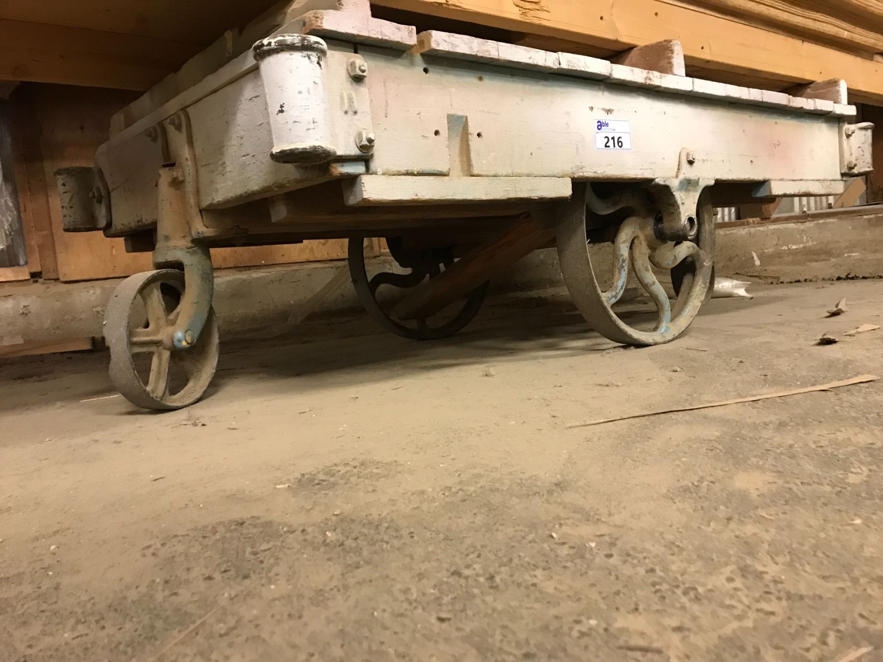 WOODEN 4 STEEL WHEEL MATERIAL PLATFORM DOLLY-APPROX. 5FT X 2 1/2FT