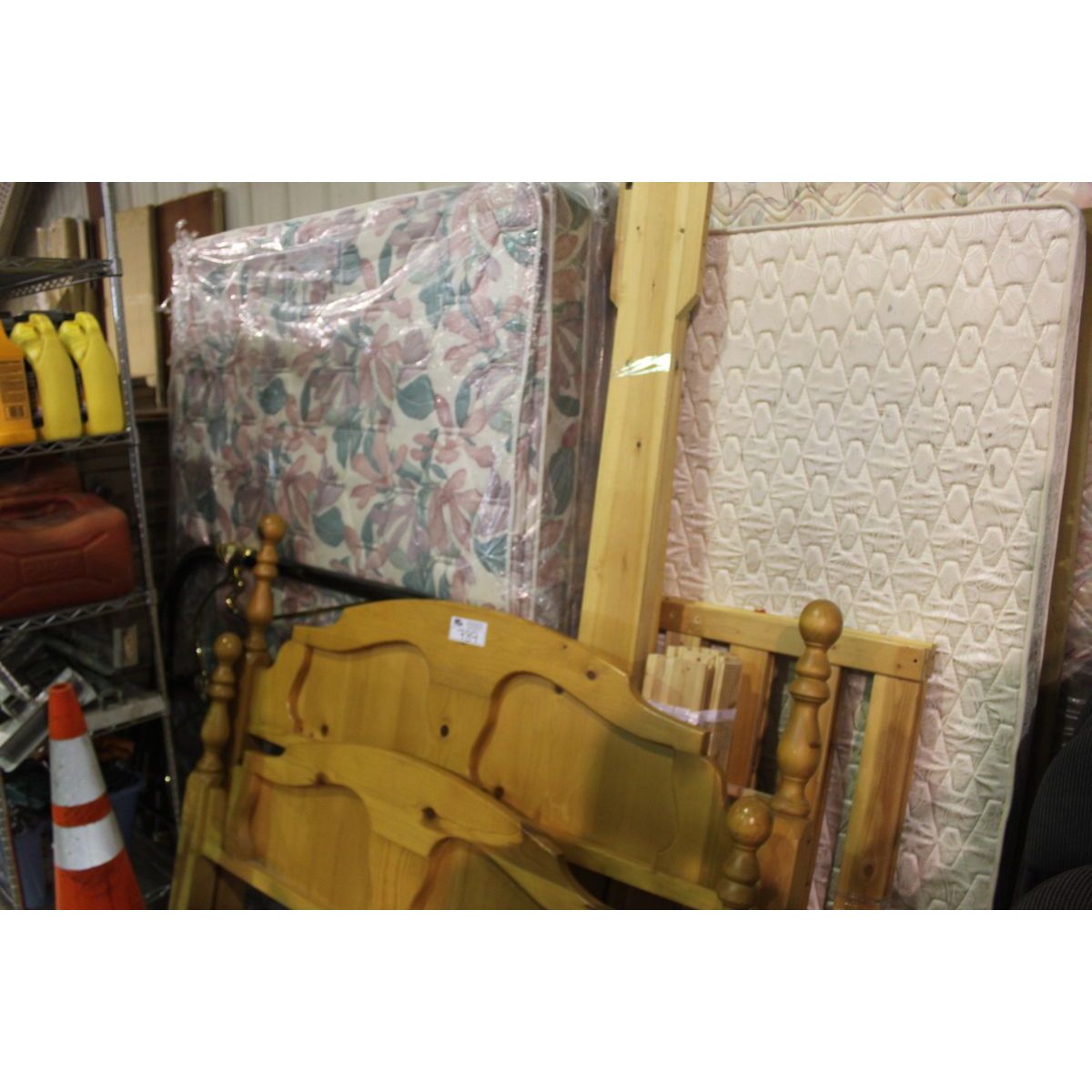 WOODEN BED FRAME, METAL HEAD BOARD & FOOT BOARD & MATTRESSES