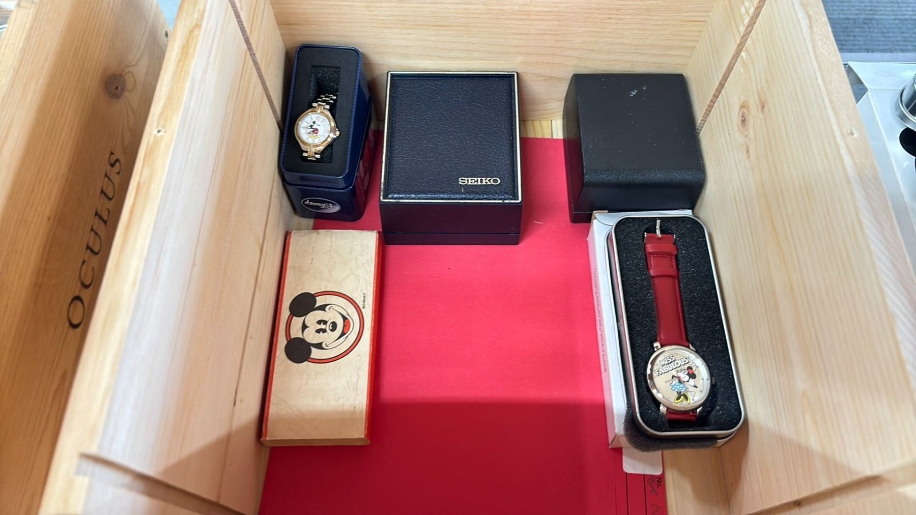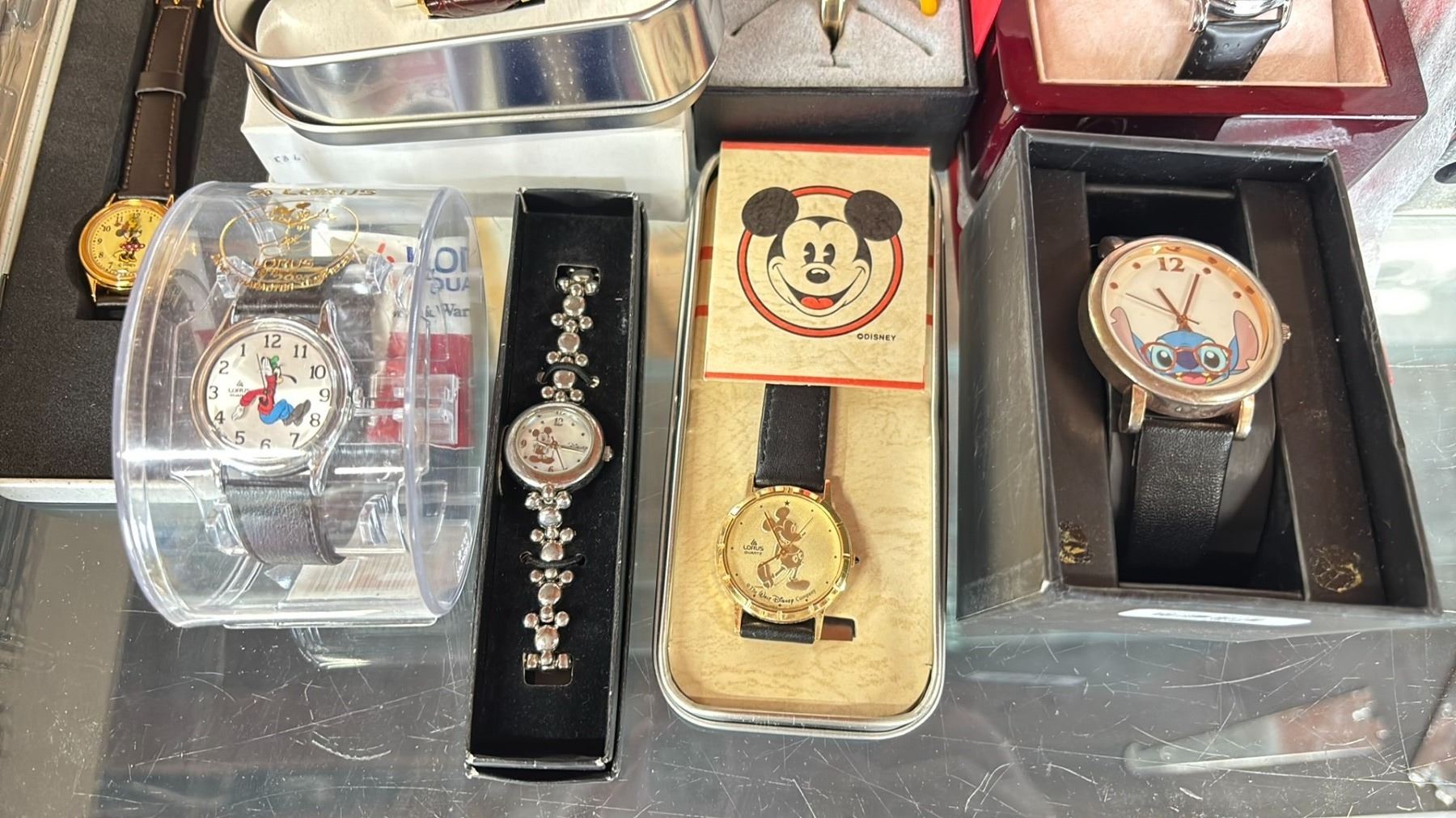 WOODEN BOX OF ASSORTED DISNEY WATCHES