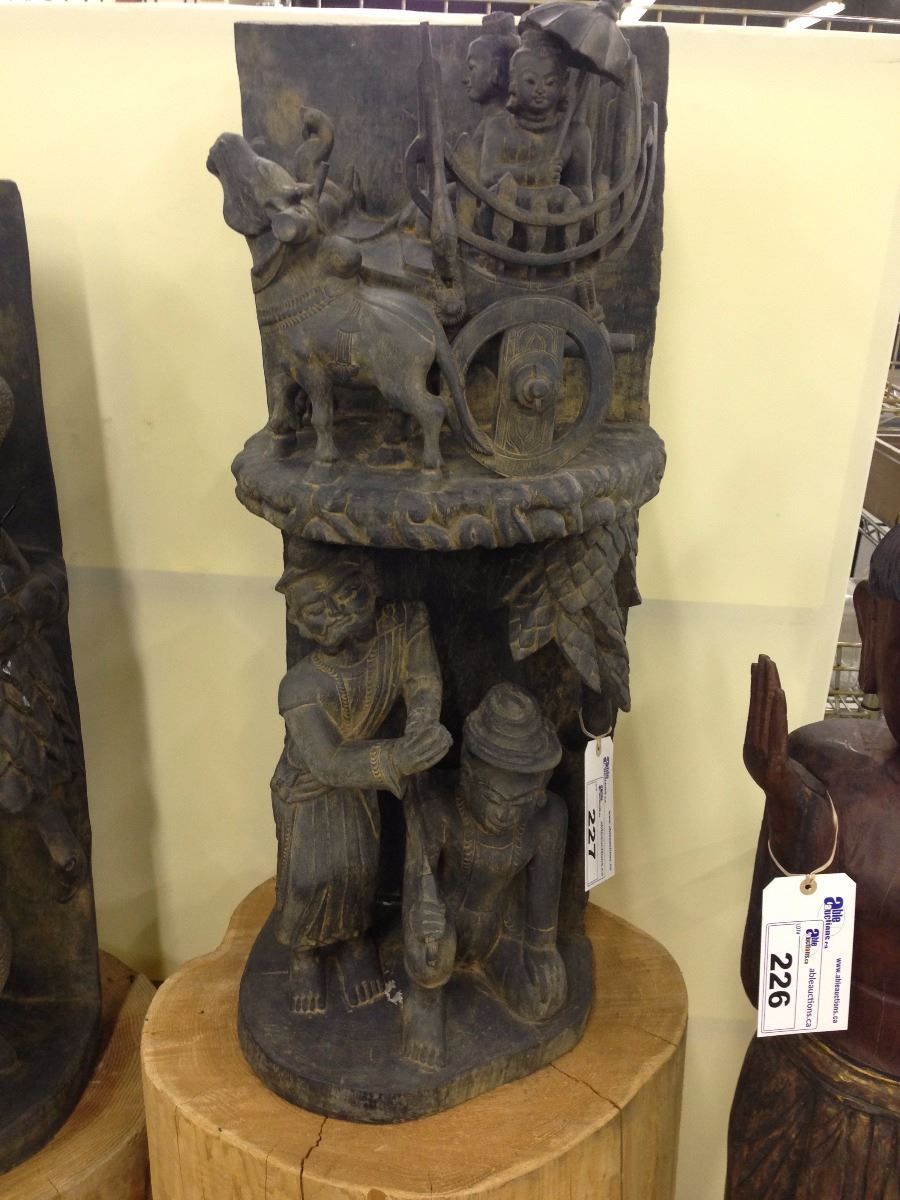 WOODEN CARVING OF 4 SOUTH ASIAN FARMERS, 36.5'' H