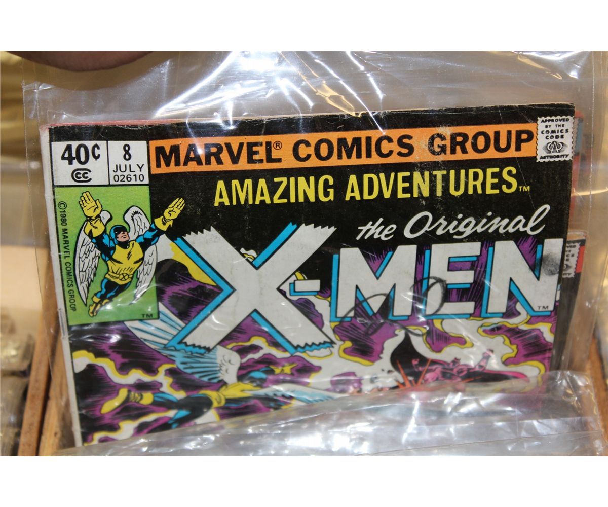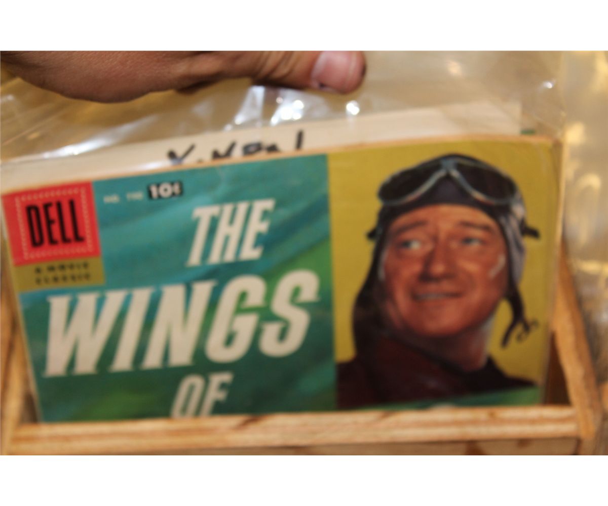 WOODEN COMIC BOX OF SILVER TO COPPER AGE COMICS - MIXED TITLES & RUNS. HOLDS APPROX. 200 COMICS, MIXED GRADES.