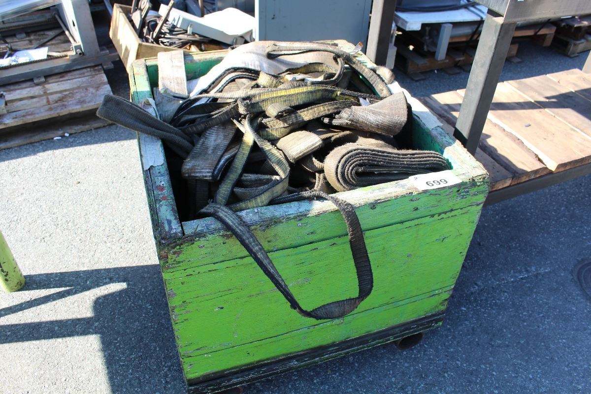 WOODEN CRATE FILLED WITH TRUCK STRAPS