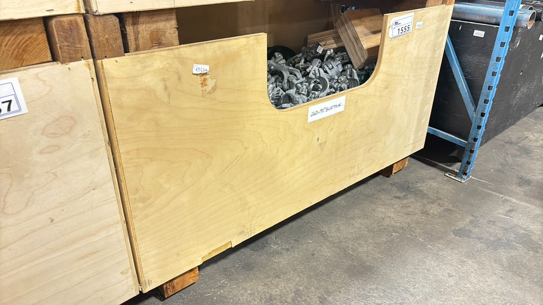 WOODEN CRATE OF 260 COMMERCIAL PRODUCTION 90 DEGREE BURTON CLAMPS *CRATE INCLUDED*