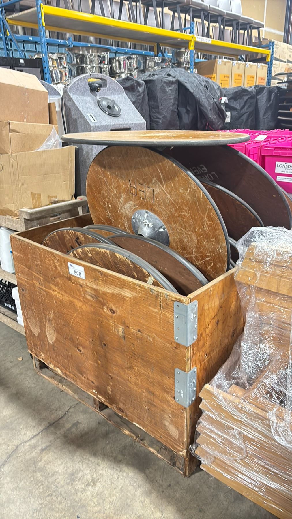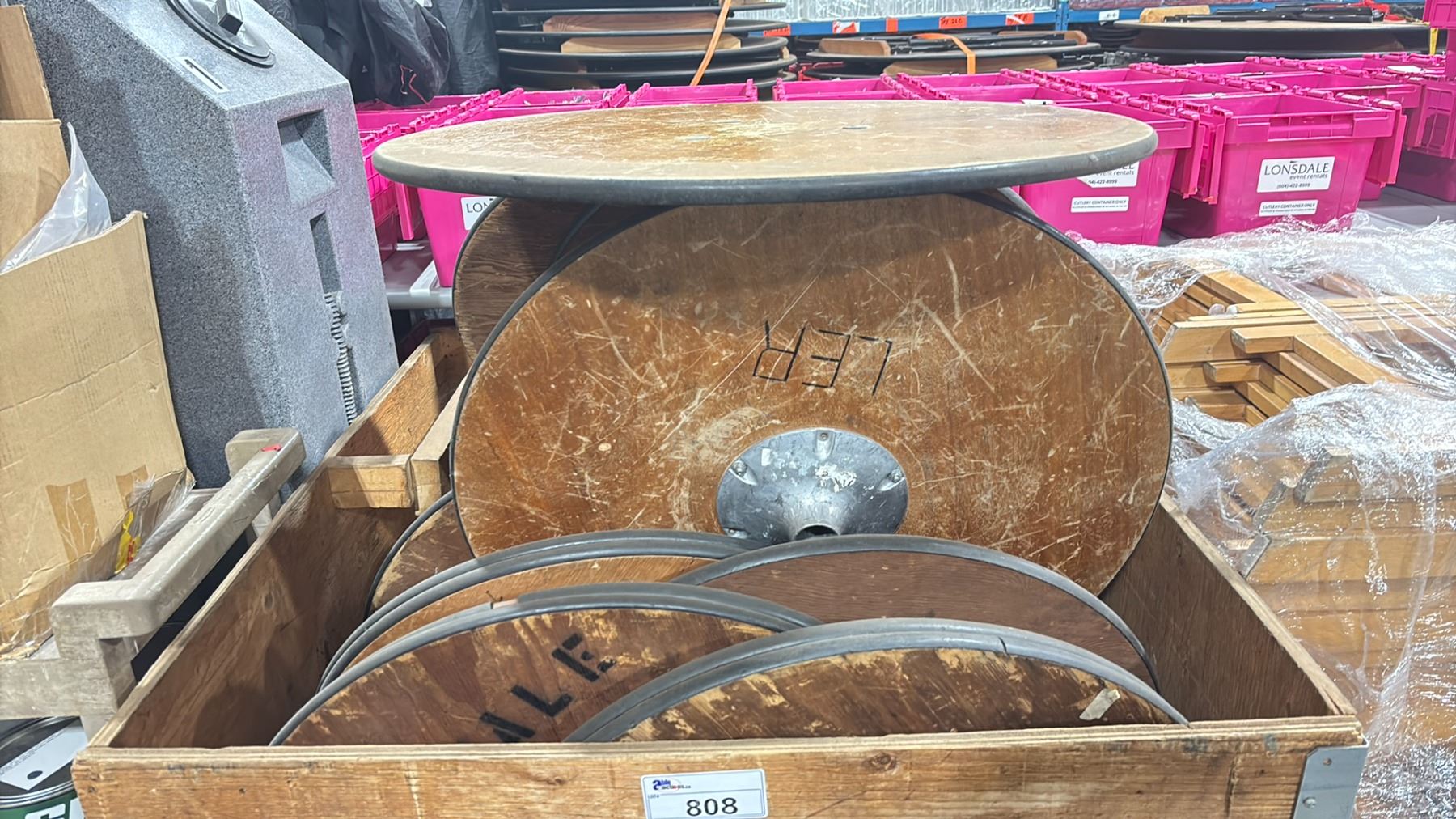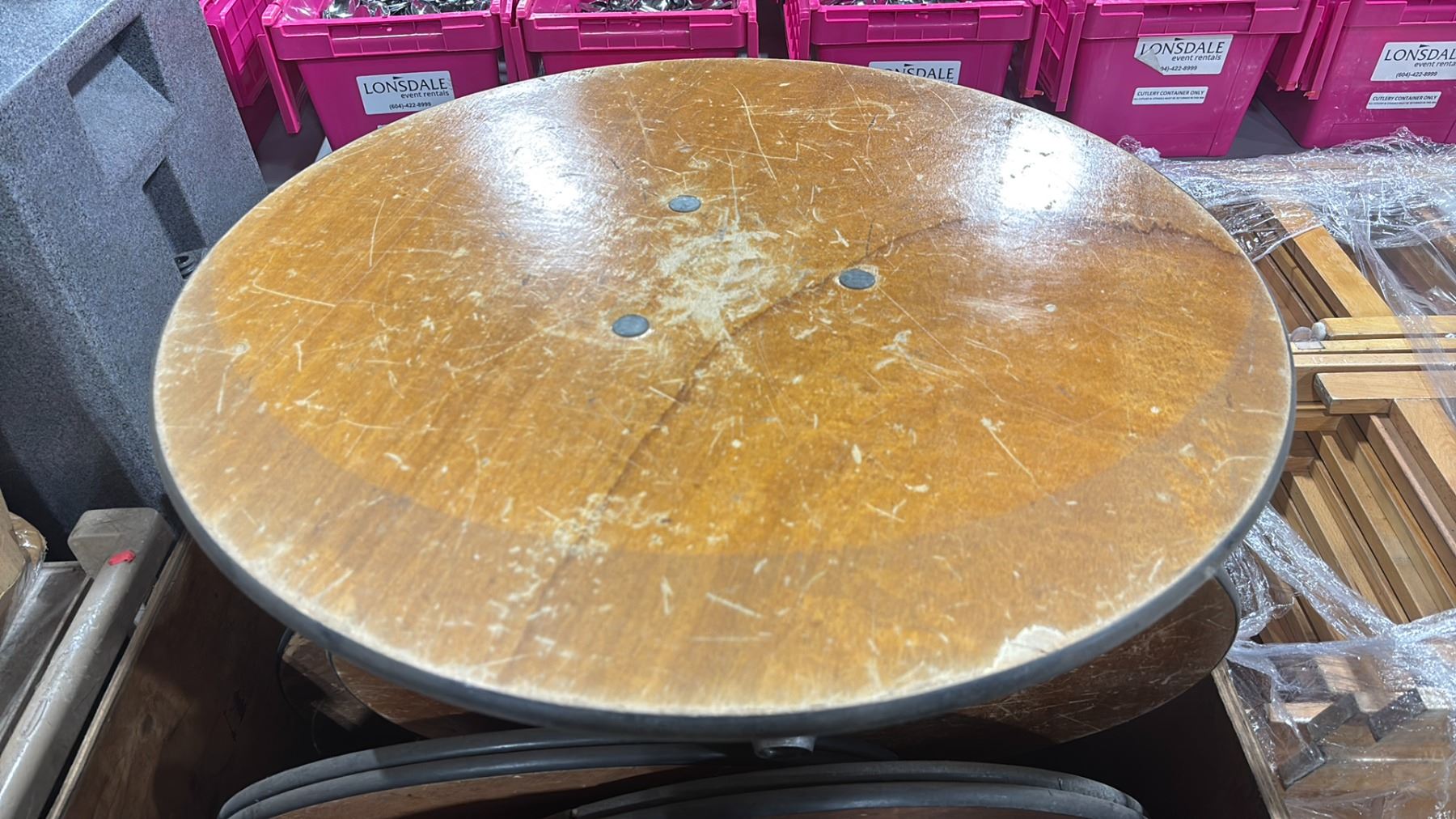 WOODEN CRATE OF 30" ROUND EVENT POLE STYLE COCKTAIL TABLE TOPS ONLY *CRATE INCLUDED*
