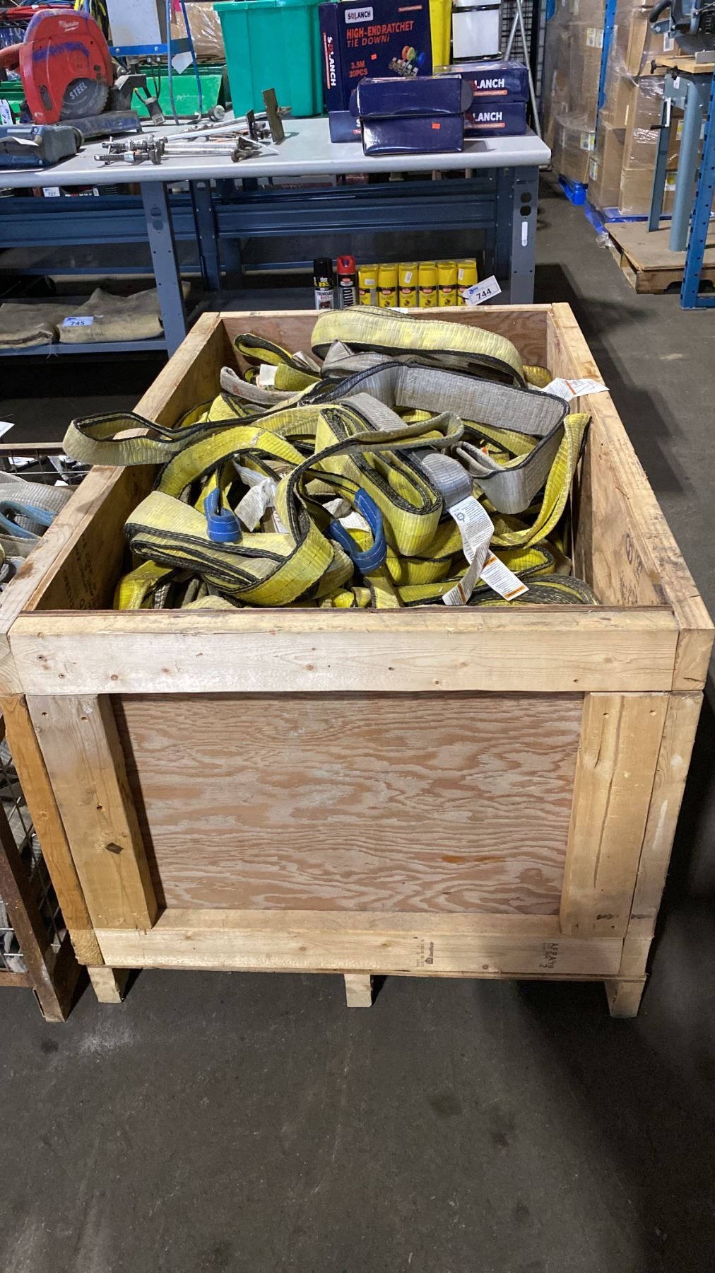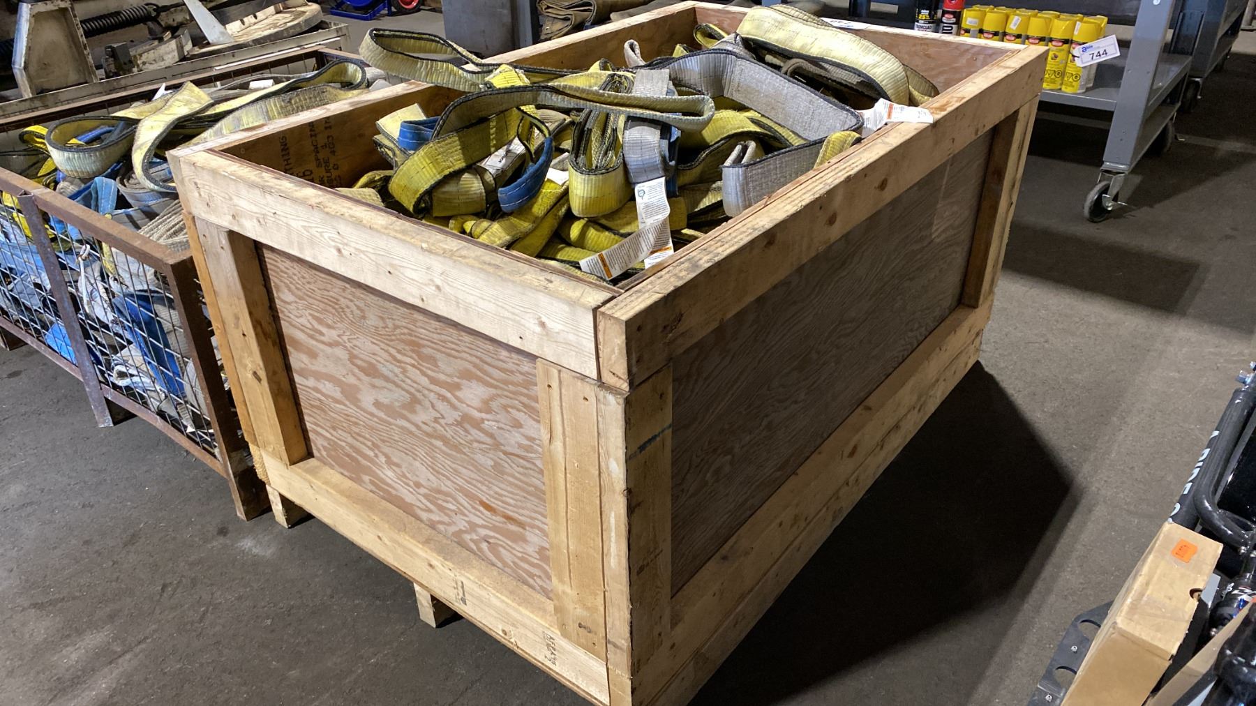 WOODEN CRATE OF ASSORTED HEAVY DUTY LIFTING STRAPS *CRATE INCLUDED*