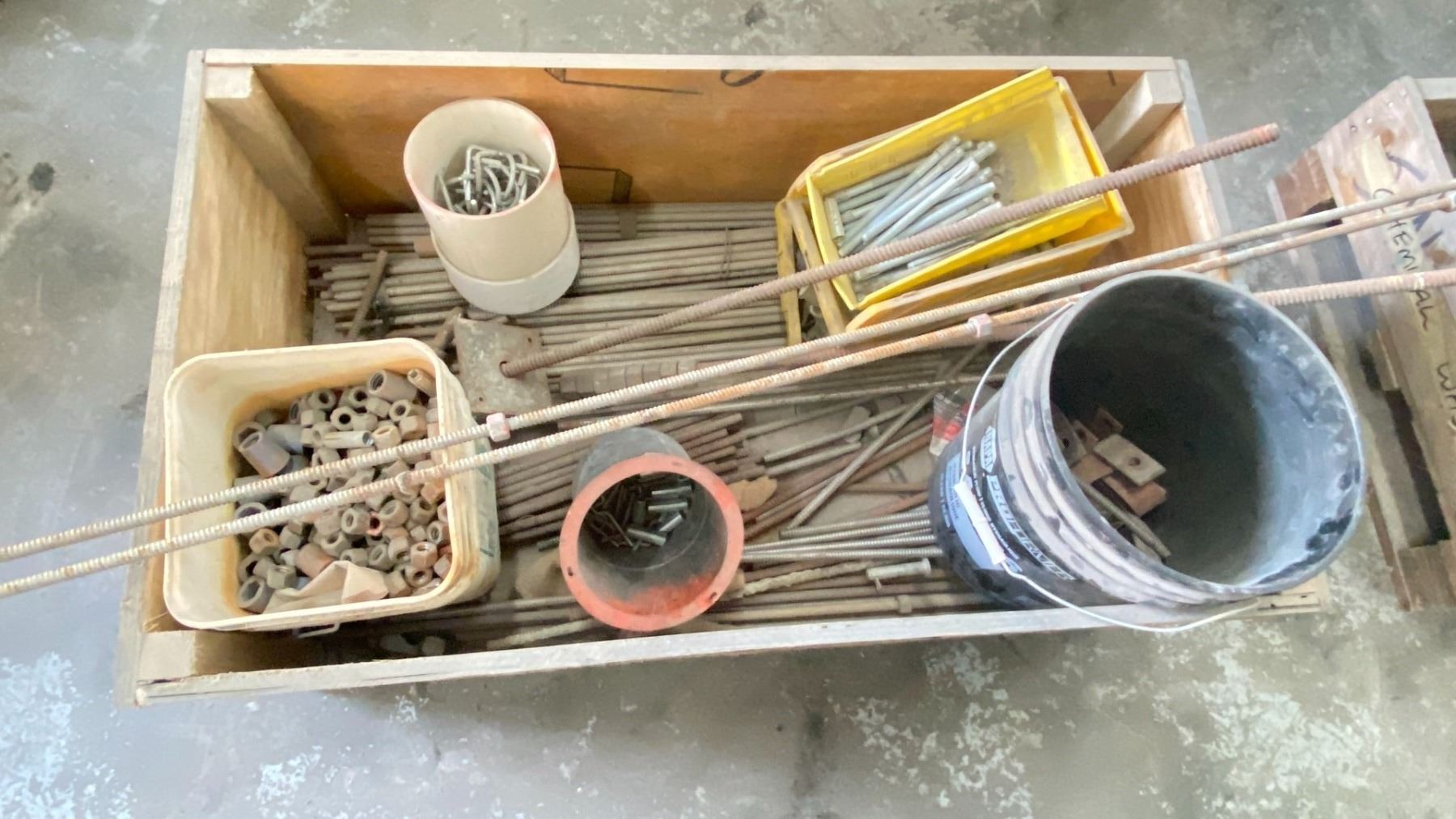 WOODEN CRATE OF COIL RODS, NUTS AND ANCHORS