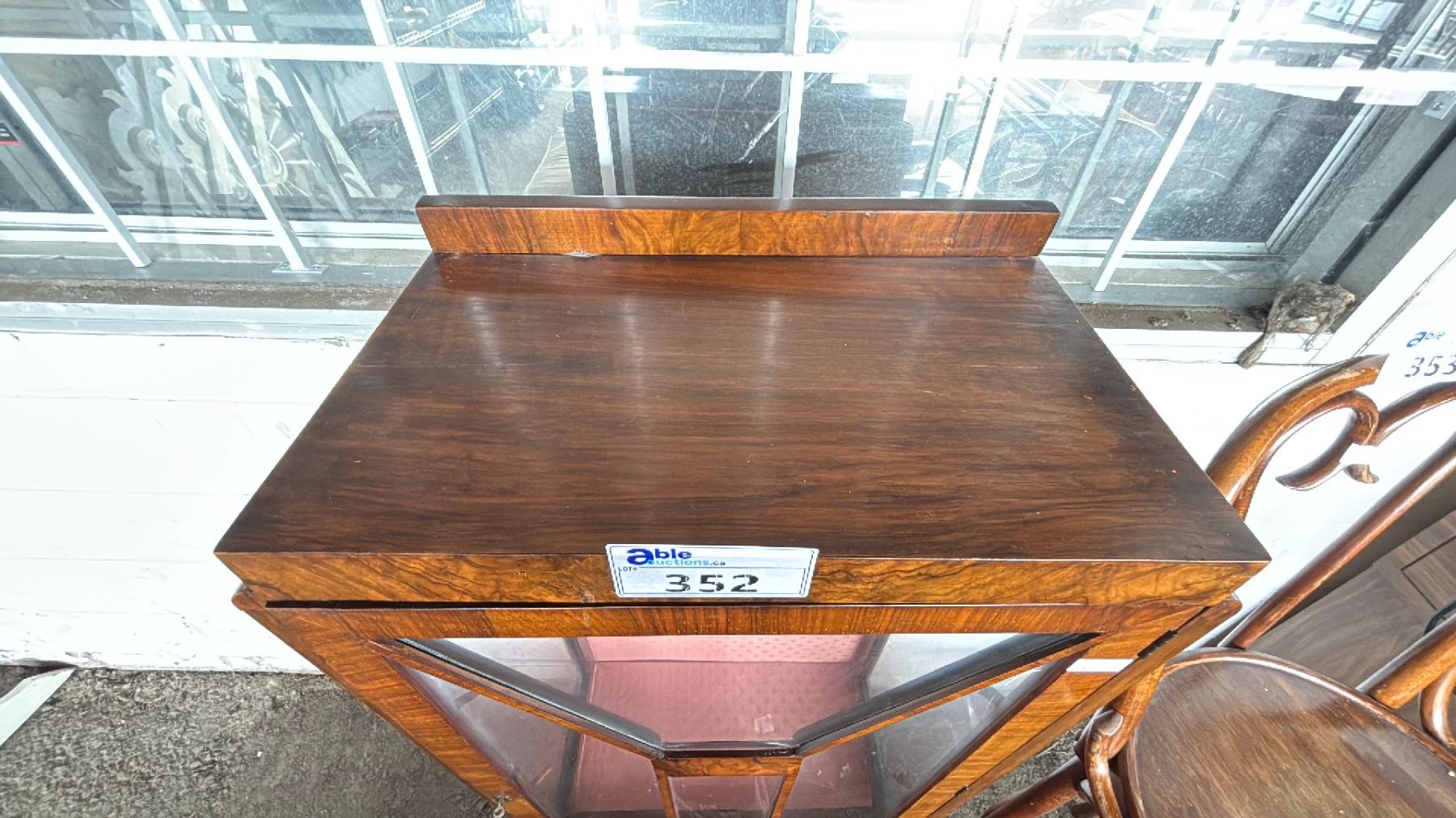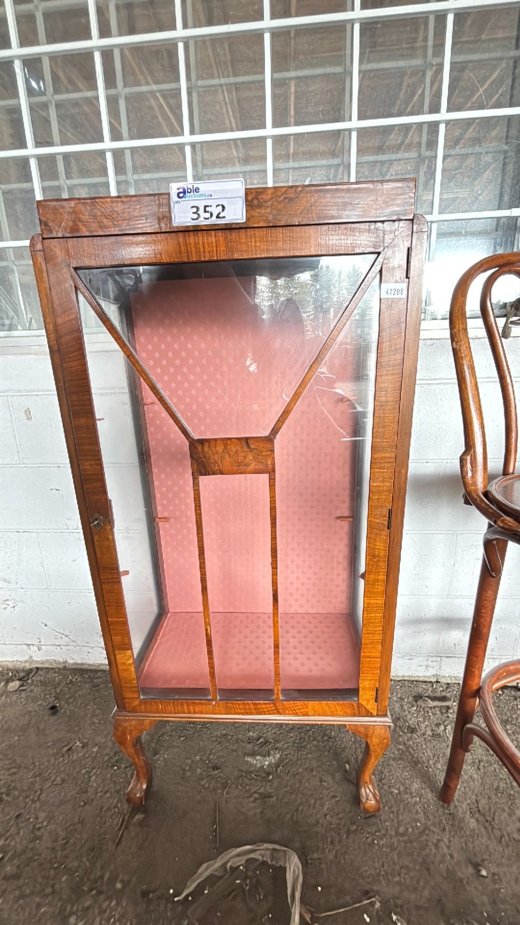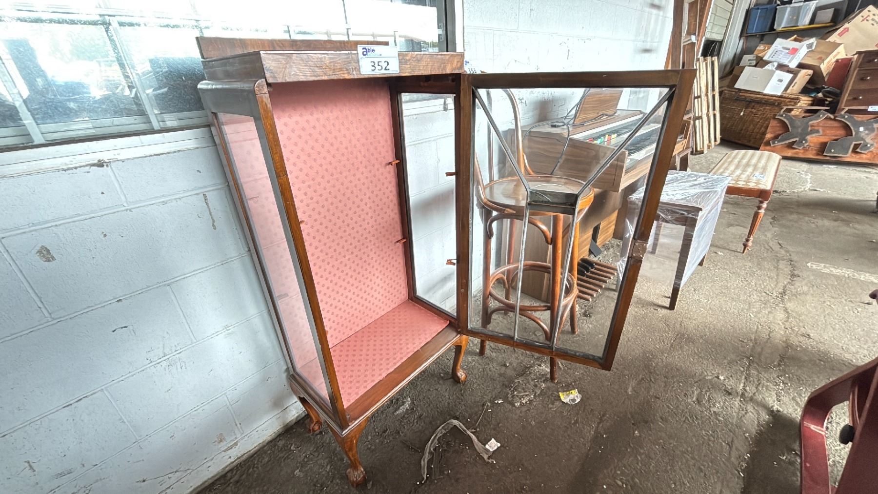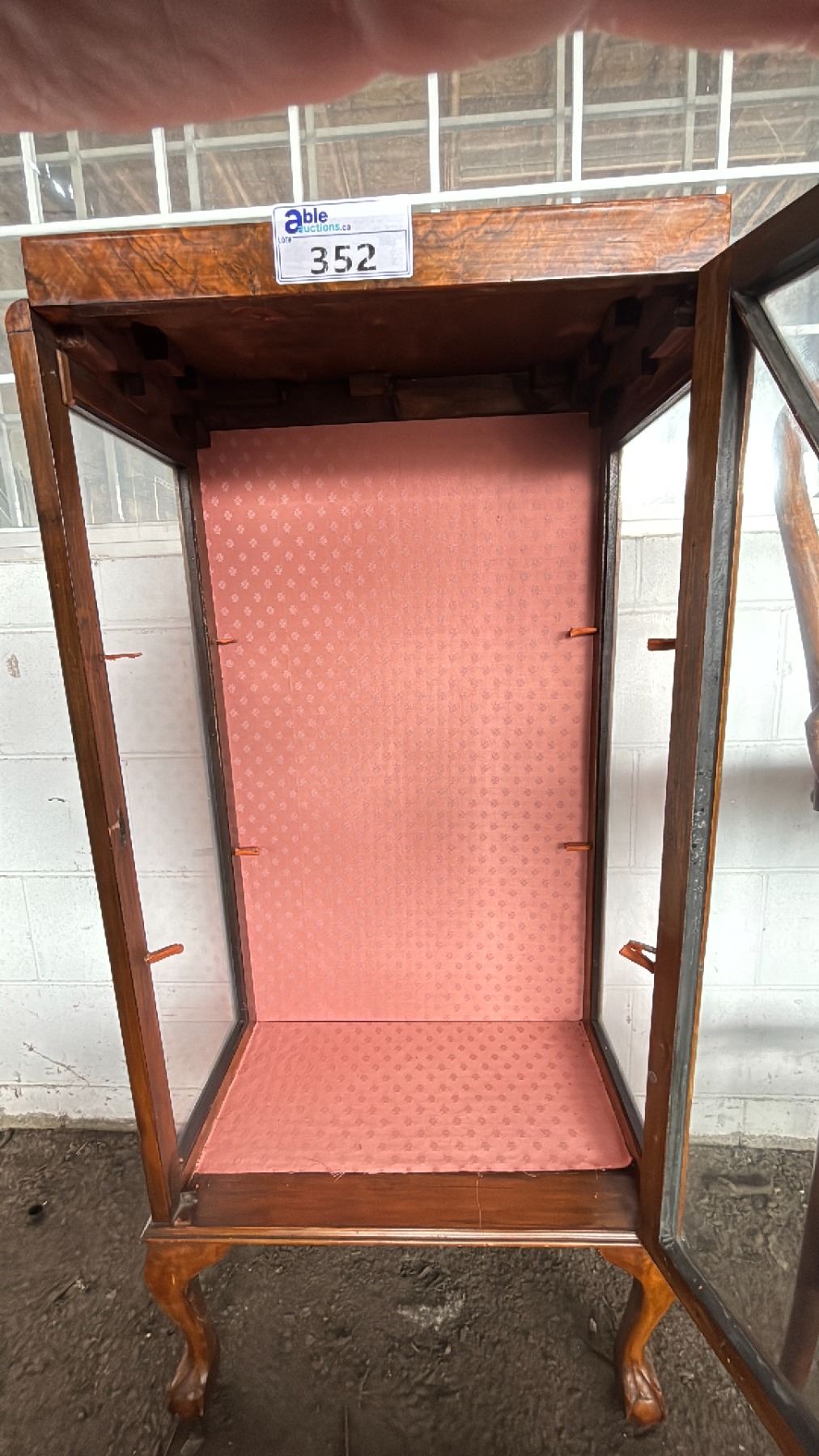 WOODEN FRAME GLASS DOOR STORAGE CABINET ANTIQUE WALNUT CHINA CABINET