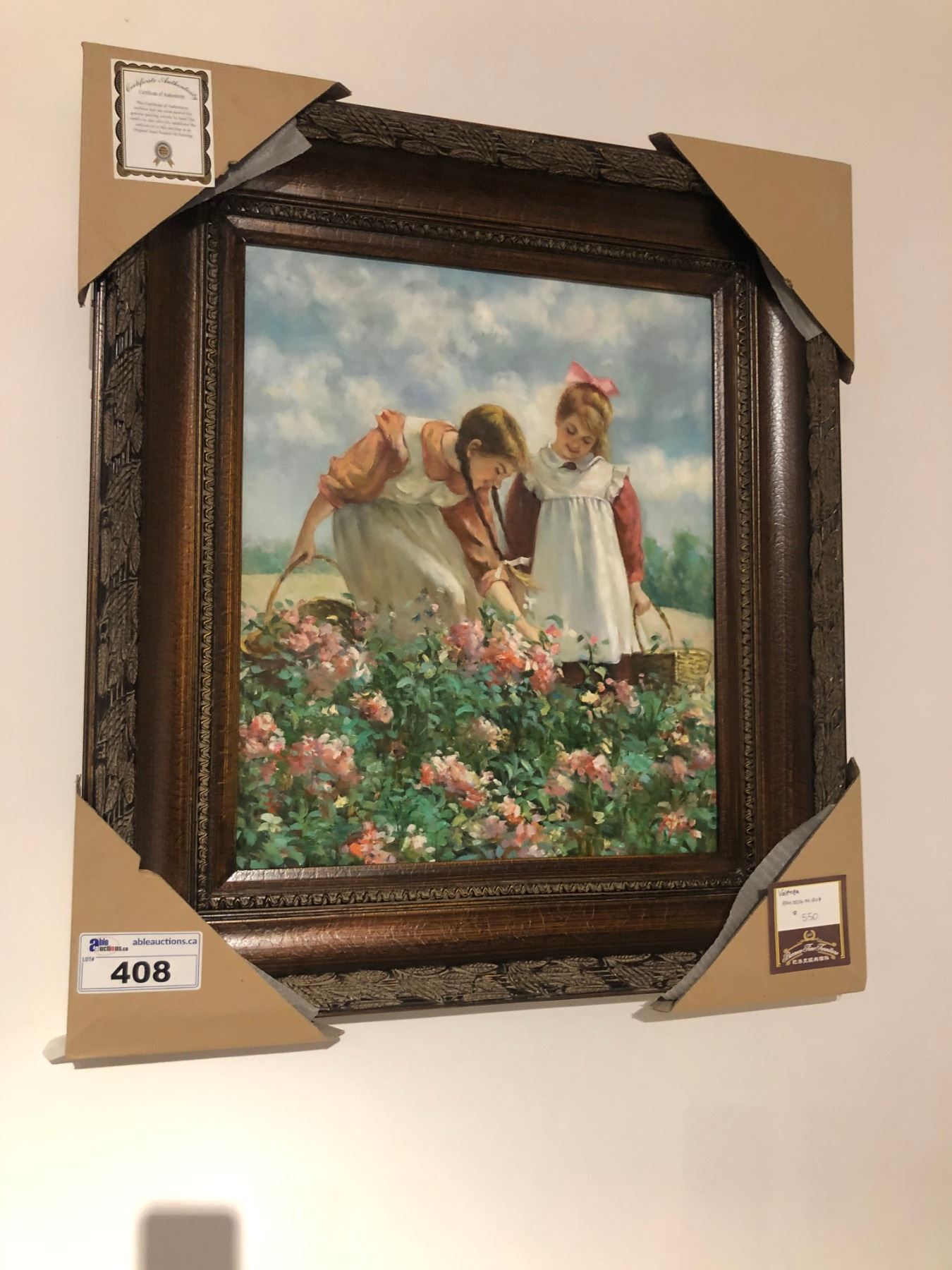 WOODEN FRAMED PAINTED ARTWORK WITH C.O.A.