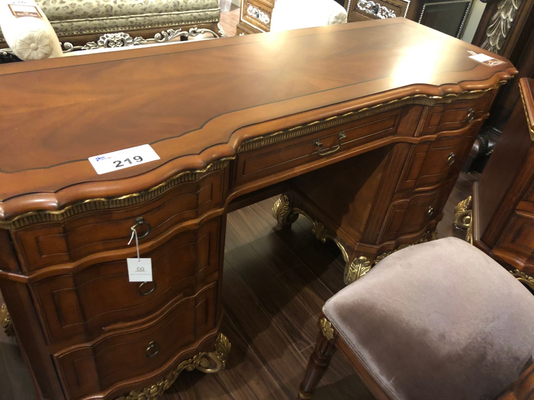 WOODEN INLAYED BEDROOM DESK WITH CHAIR