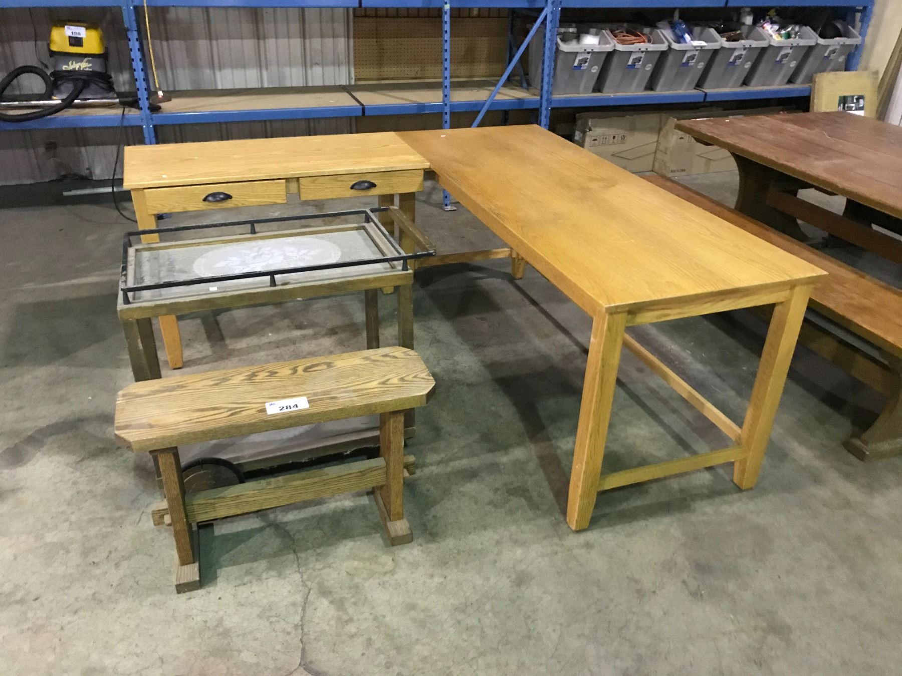 WOODEN L - SHAPE DESK, BENCH & BAR CART