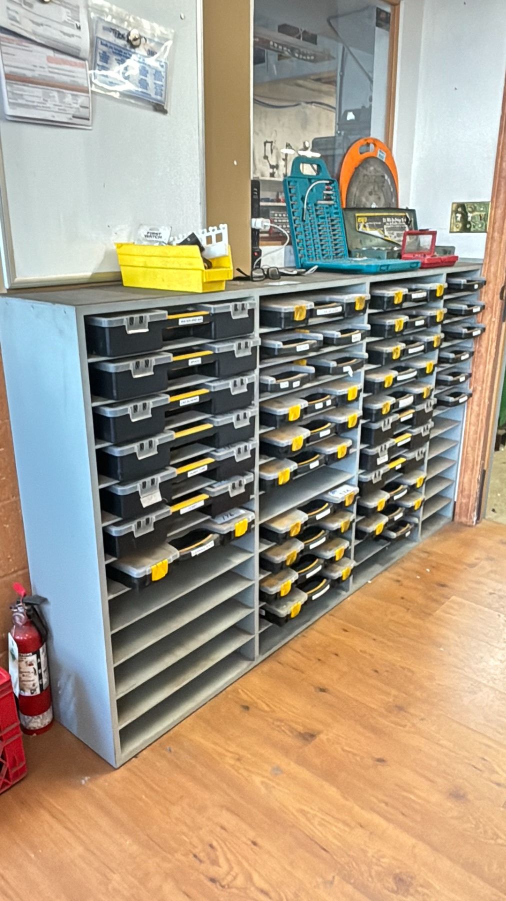 WOODEN ORGANIZER STORAGE CABINET - APPROX. 6'W X 3.5'H X 1'D * CONTENTS NOT INCLUDED *