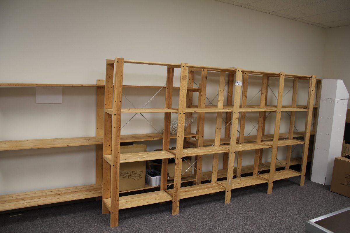 WOODEN PRODUCT SHELVING AND CARDBOARD BOXES