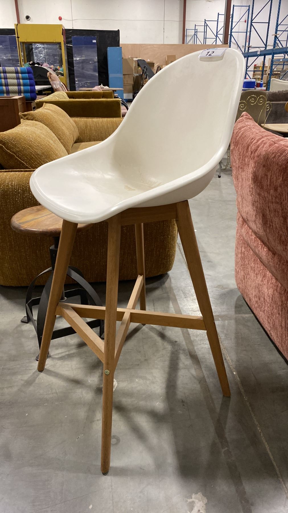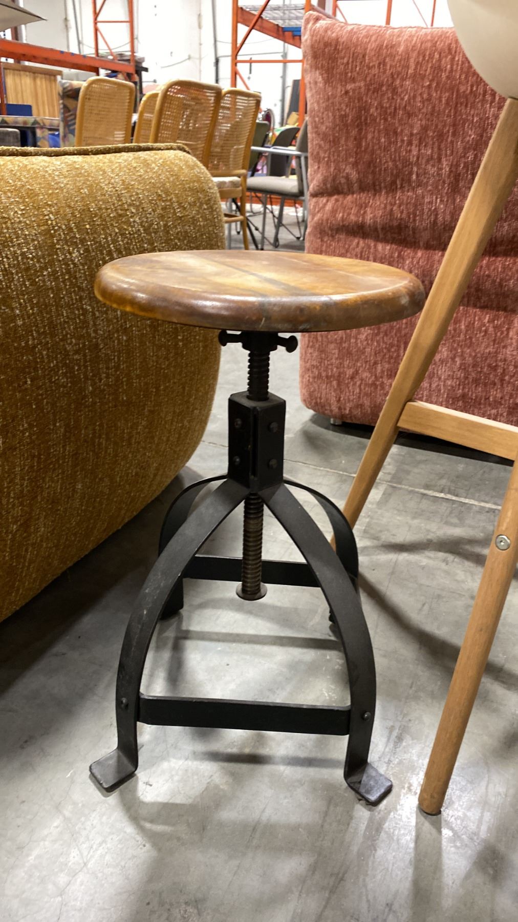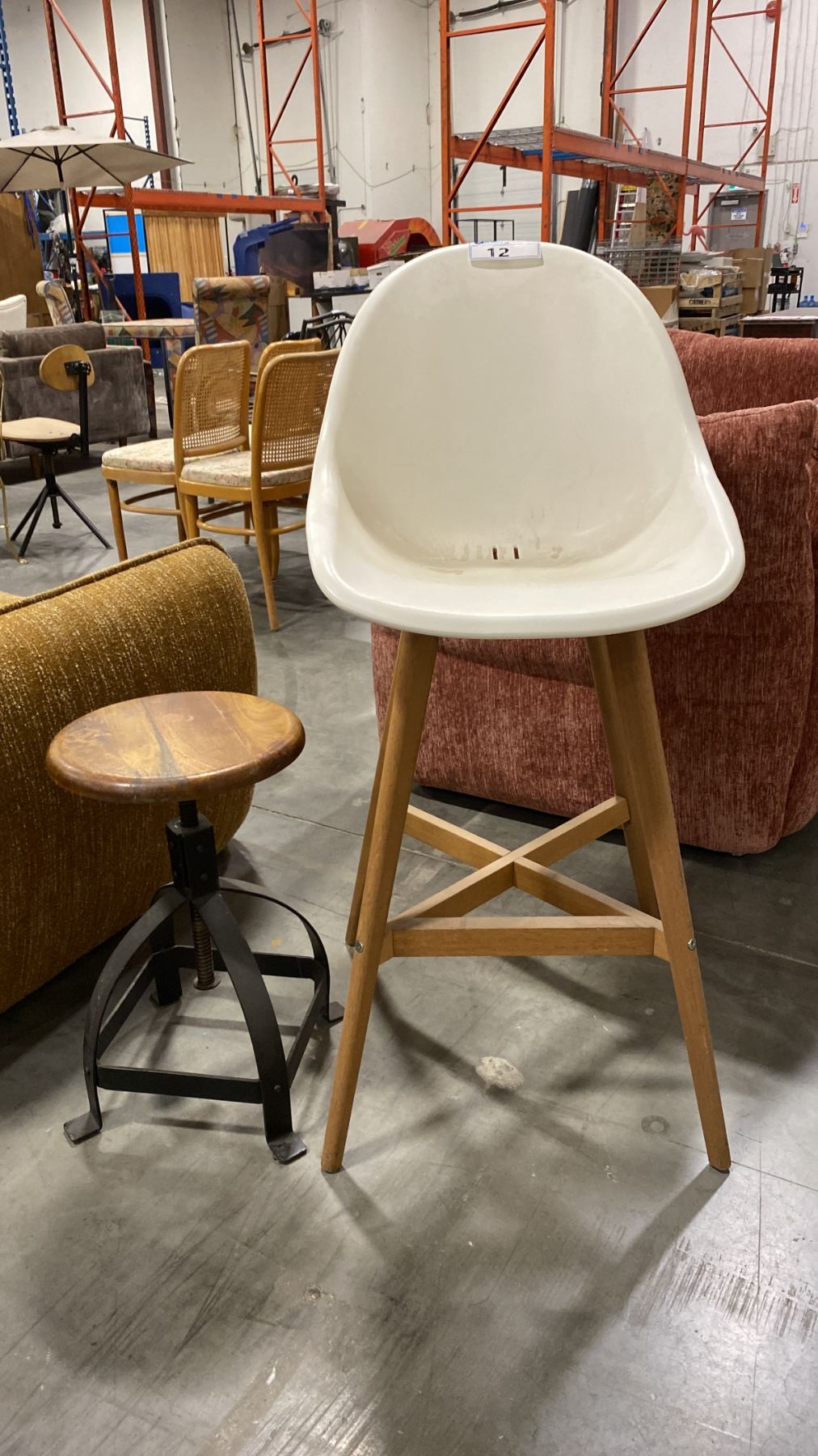 WOODEN TOP METAL LEG STOOL & A WHITE BARSTOOL