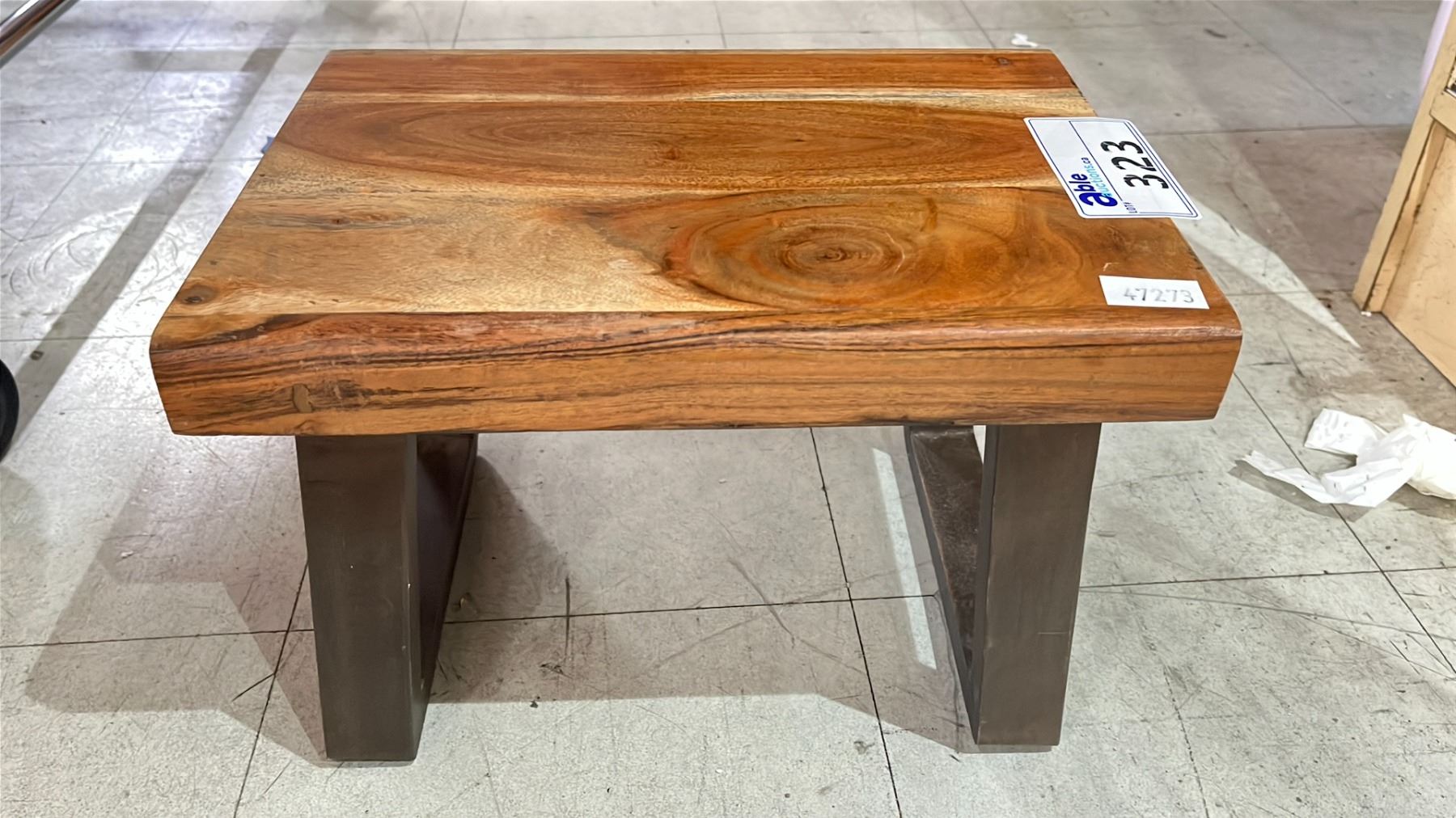 WOODEN TOP METAL LEG STOOL