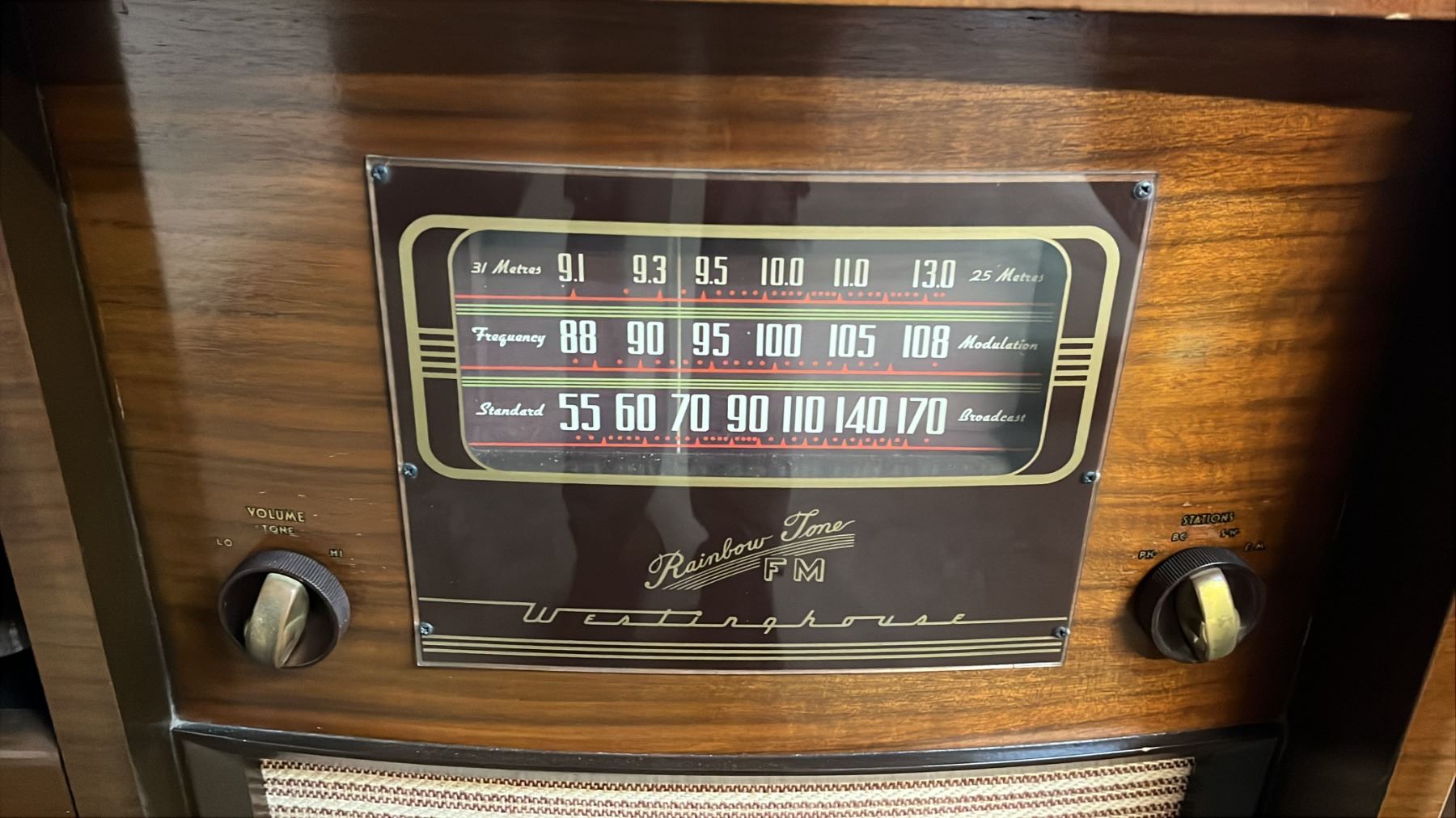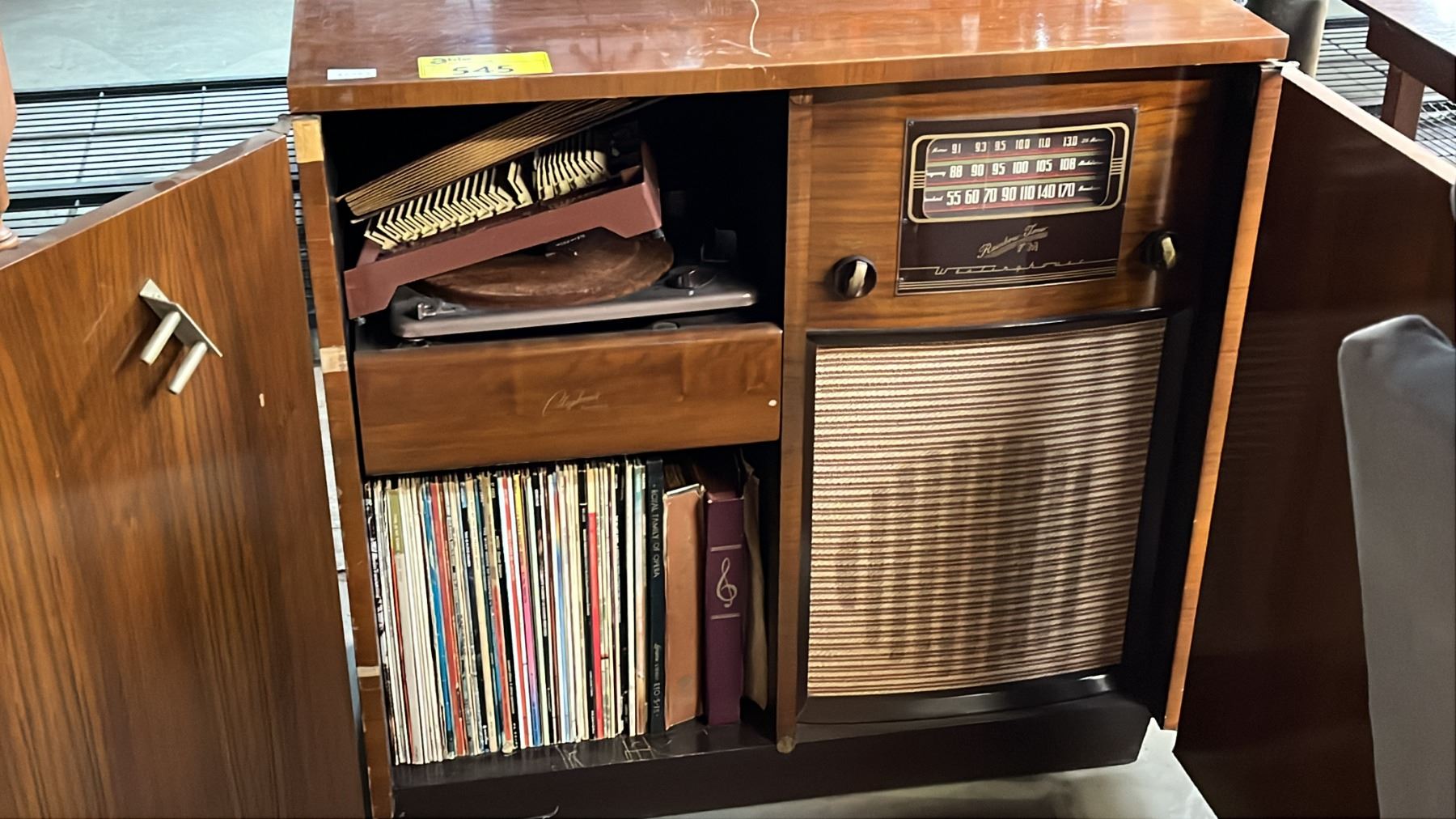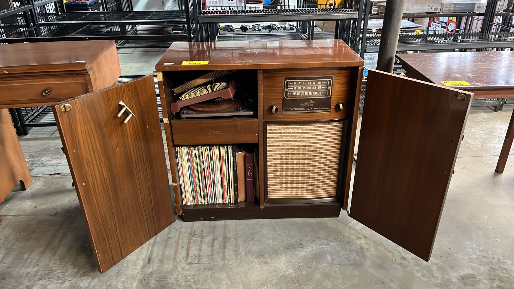 WOODEN TWO DOOR RADIO CABINET - APPROX. 32"W X 16"D X 31"H *CONTENTS INCLUDED*