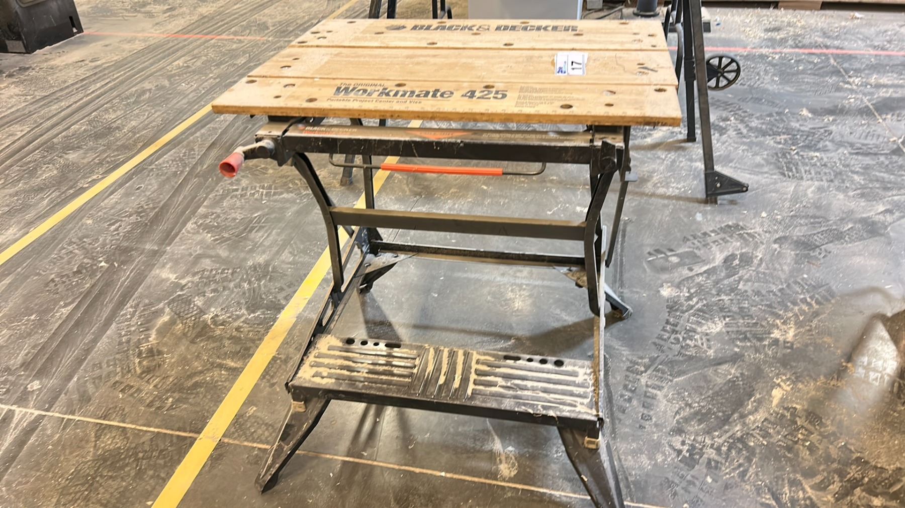 WORKMATE 425 WORK BENCH, 1 HANDLE IS BROKEN BUT WORKS.