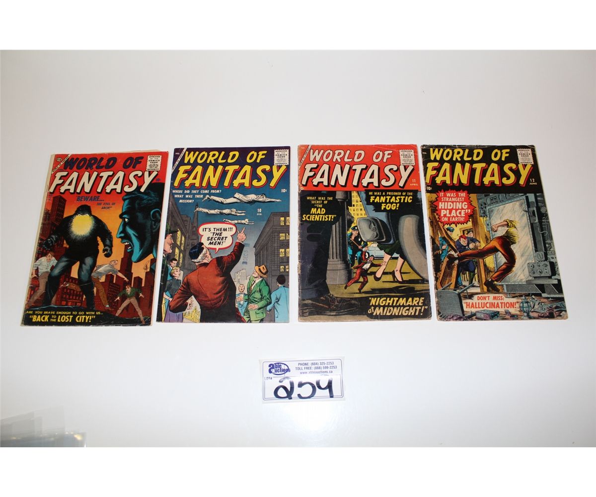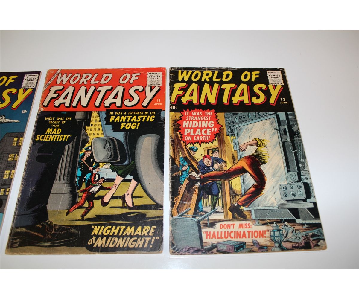WORLD OF FANTASY #5, 10-12 (1957-58) (ATLAS) 4 CLASSIC PRE-HERO MARVELS. LOW TO MID GRADE AVERAGE. ALL SOLID & COMPLETE, NO PIECES OUT, SUPPLE. NICE ATLAS RUN!