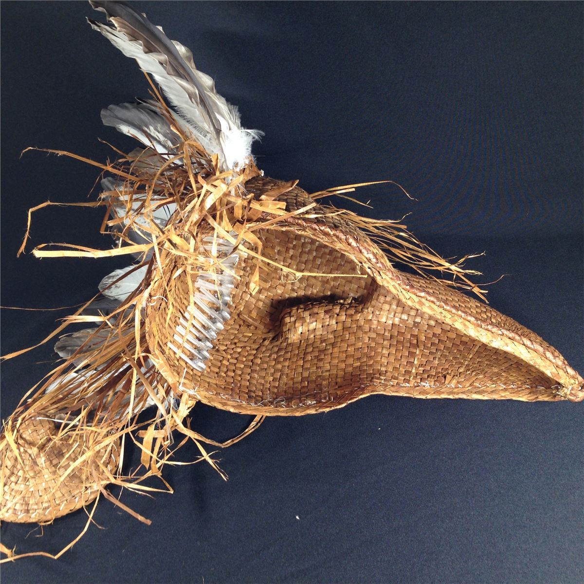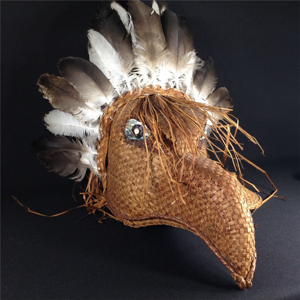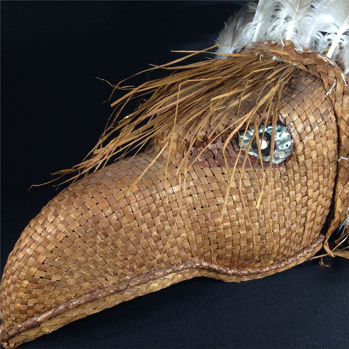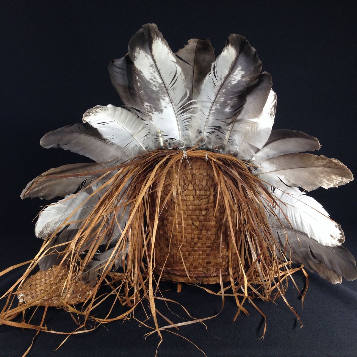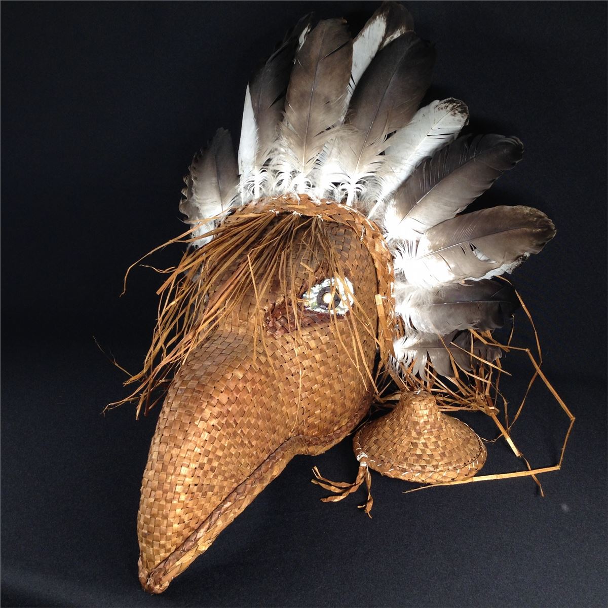 WOVEN CEDAR, EAGLE MASK WITH FEATHERS 13" DEEP X 16" HIGH (TO TOP OF FEATHERS)